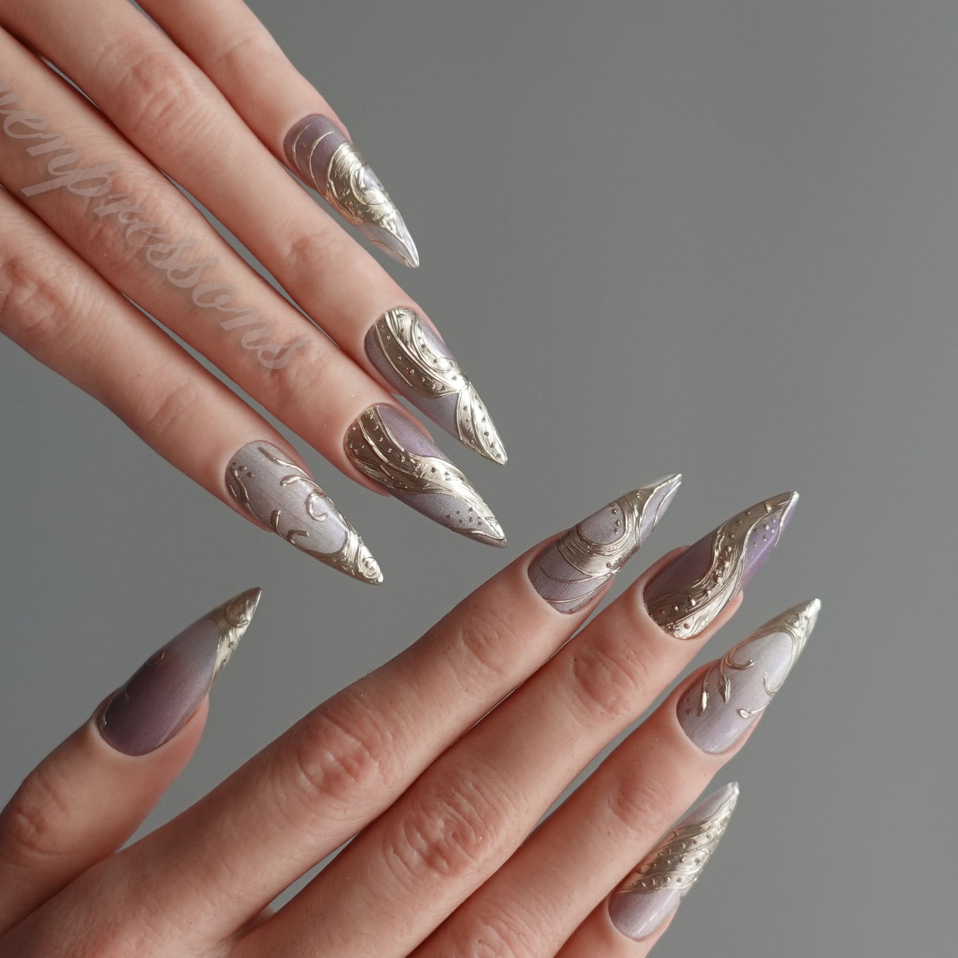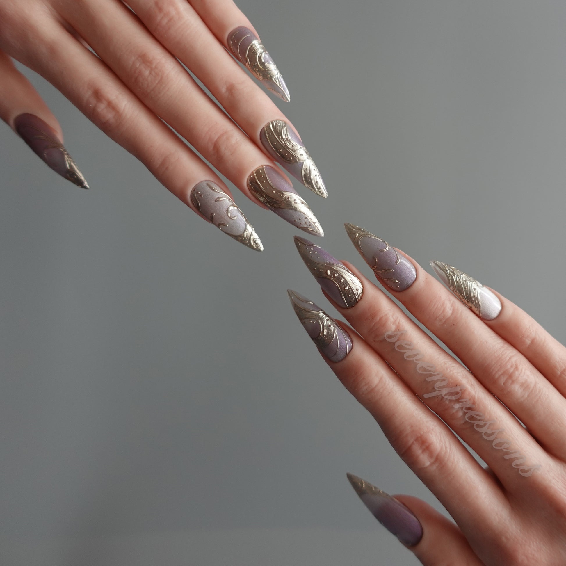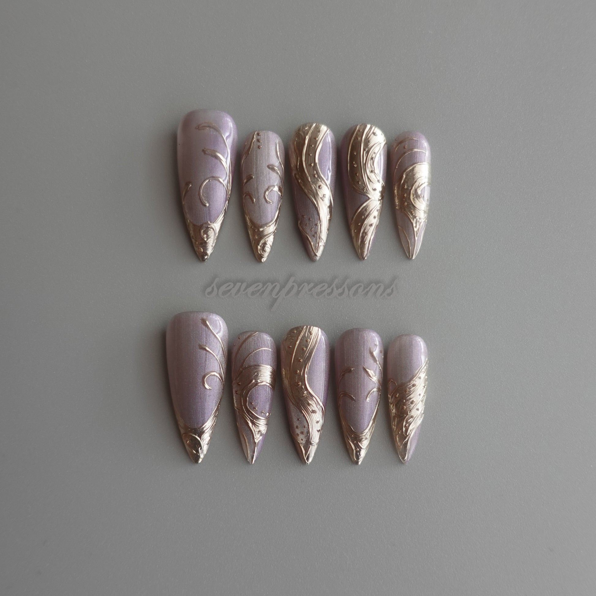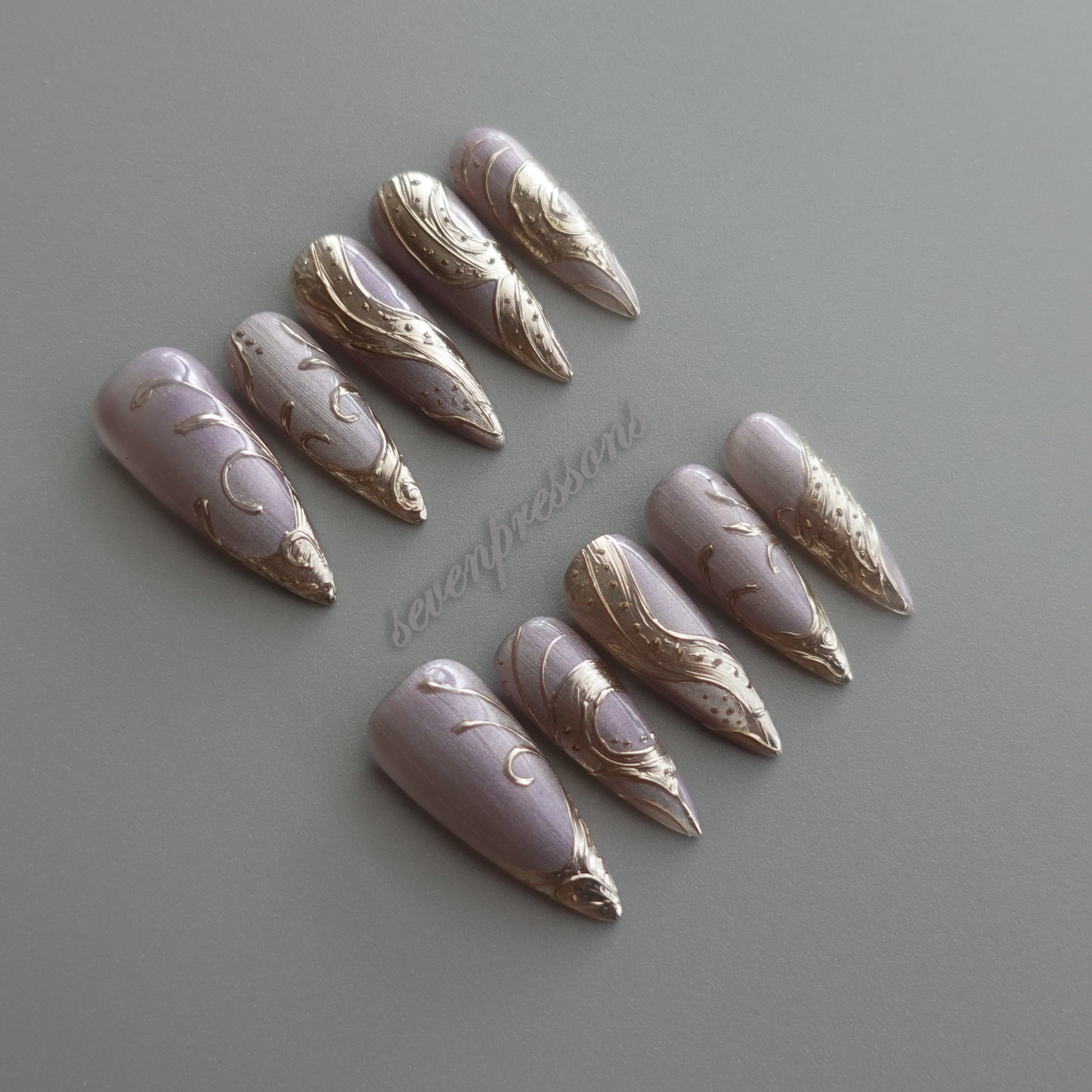 Seven Treasures nails are custom-made works of nail art.