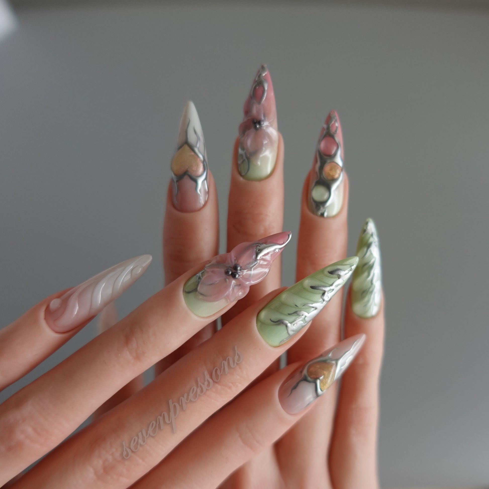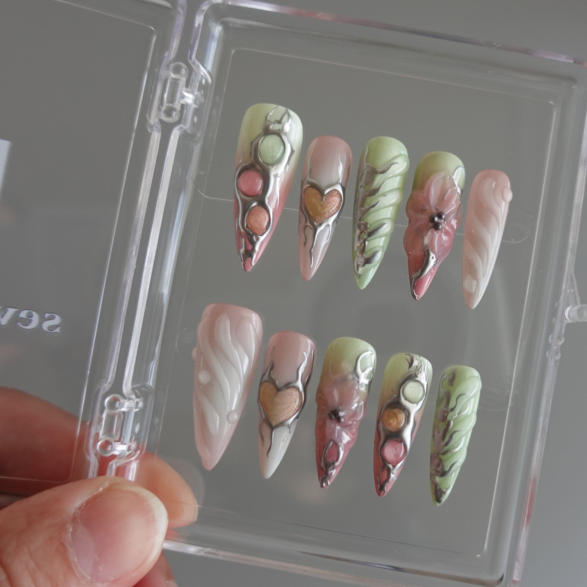Each nail is individually hand-painted and sculpted—minor variations enhance its artisanal uniqueness.