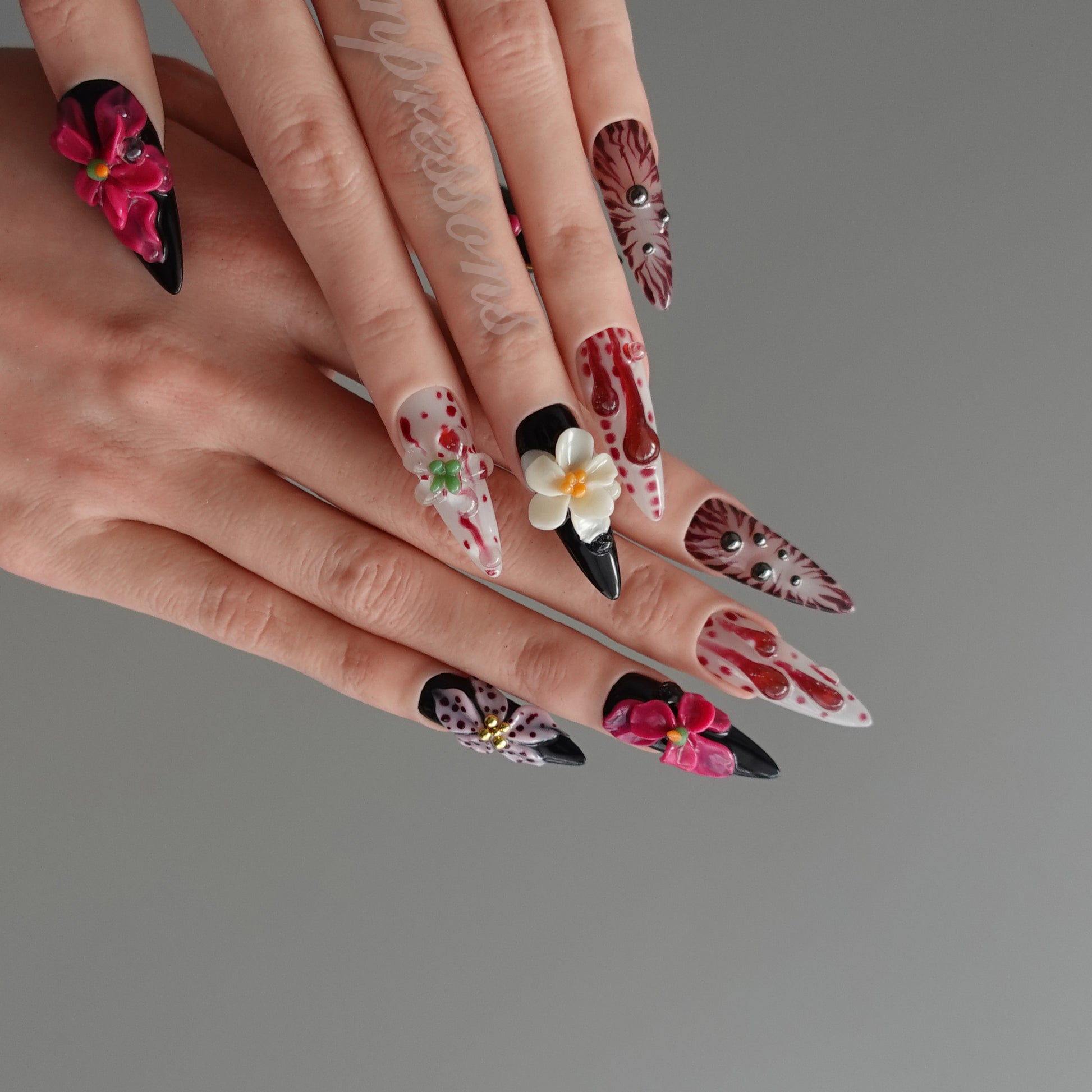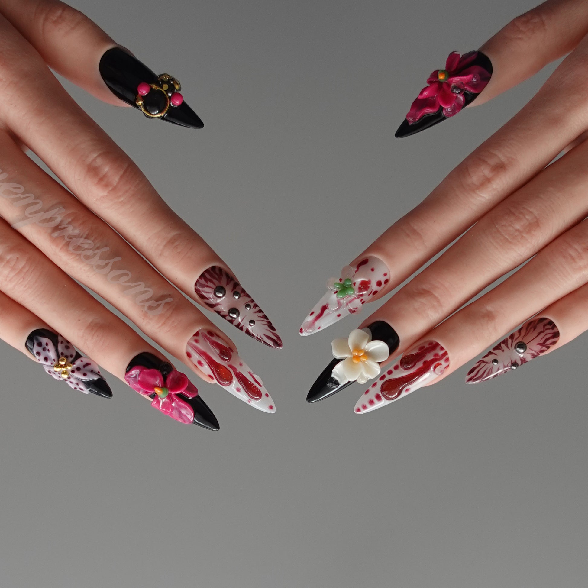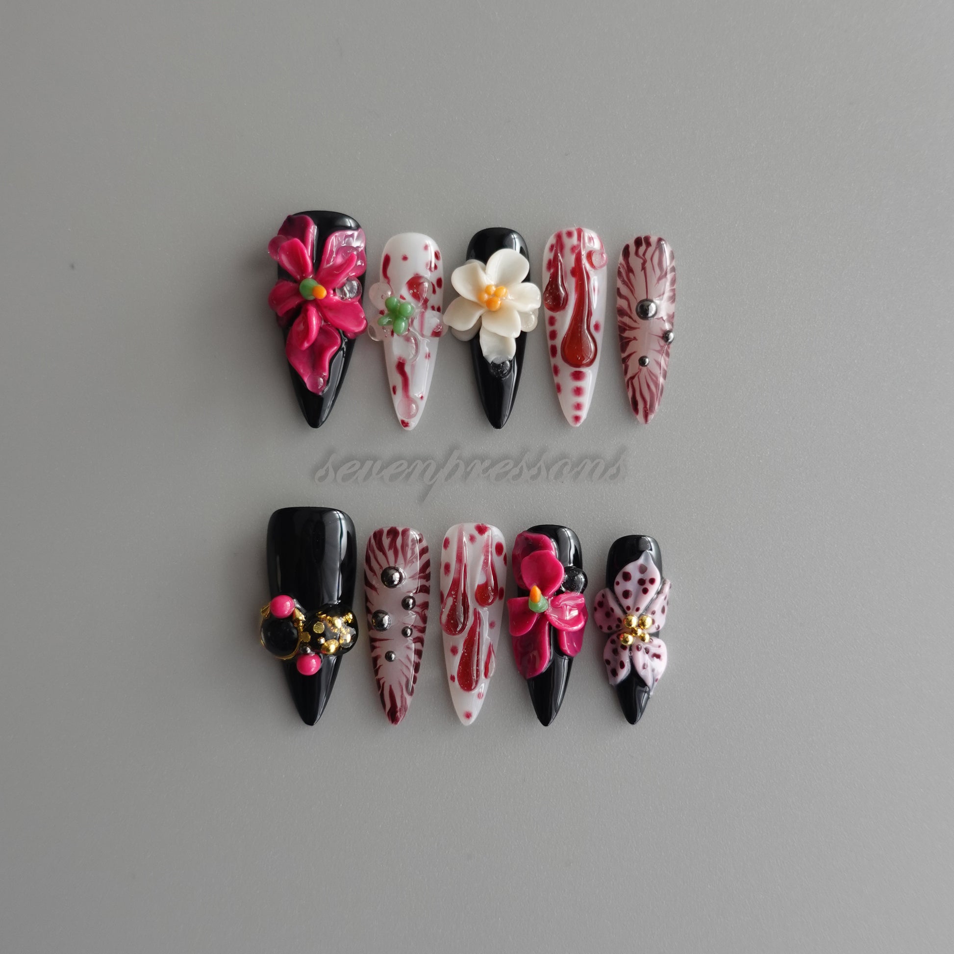 Seven Treasures nails are custom-made works of nail art.