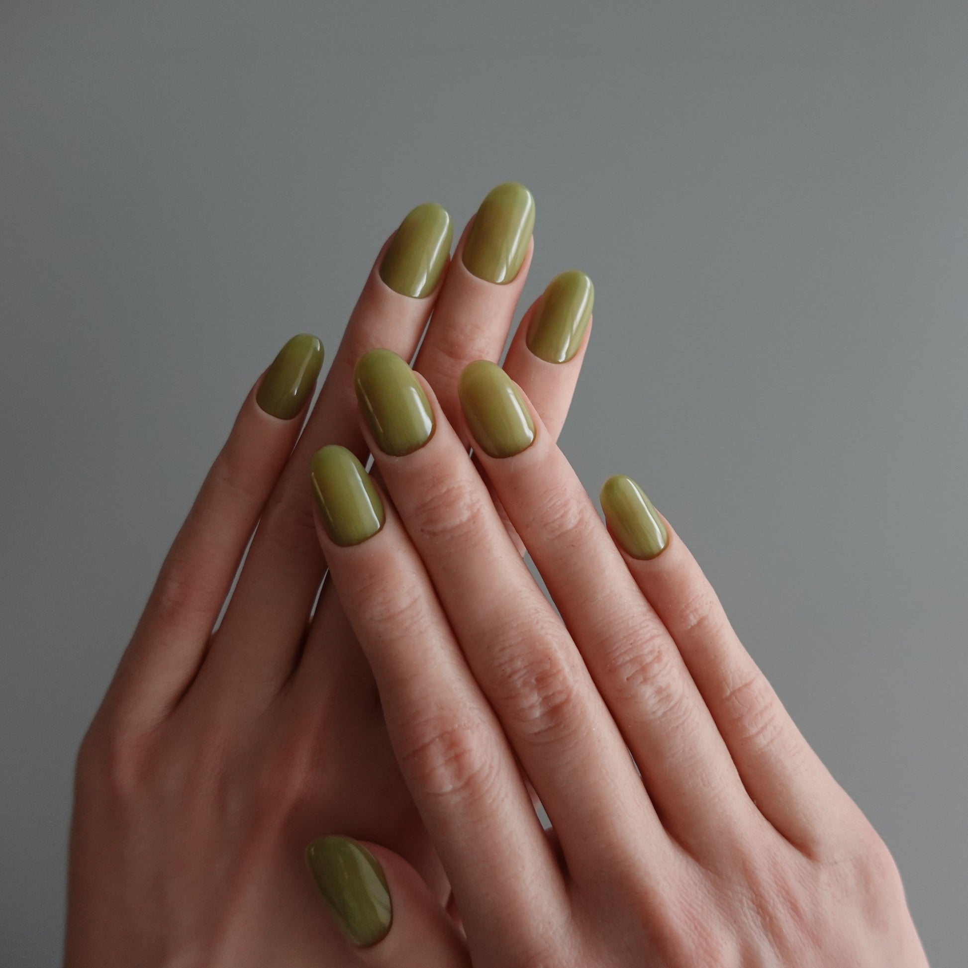 Olive Mist is a soft, translucent olive-green shade inspired by sunlit leaves and early-morning mist.