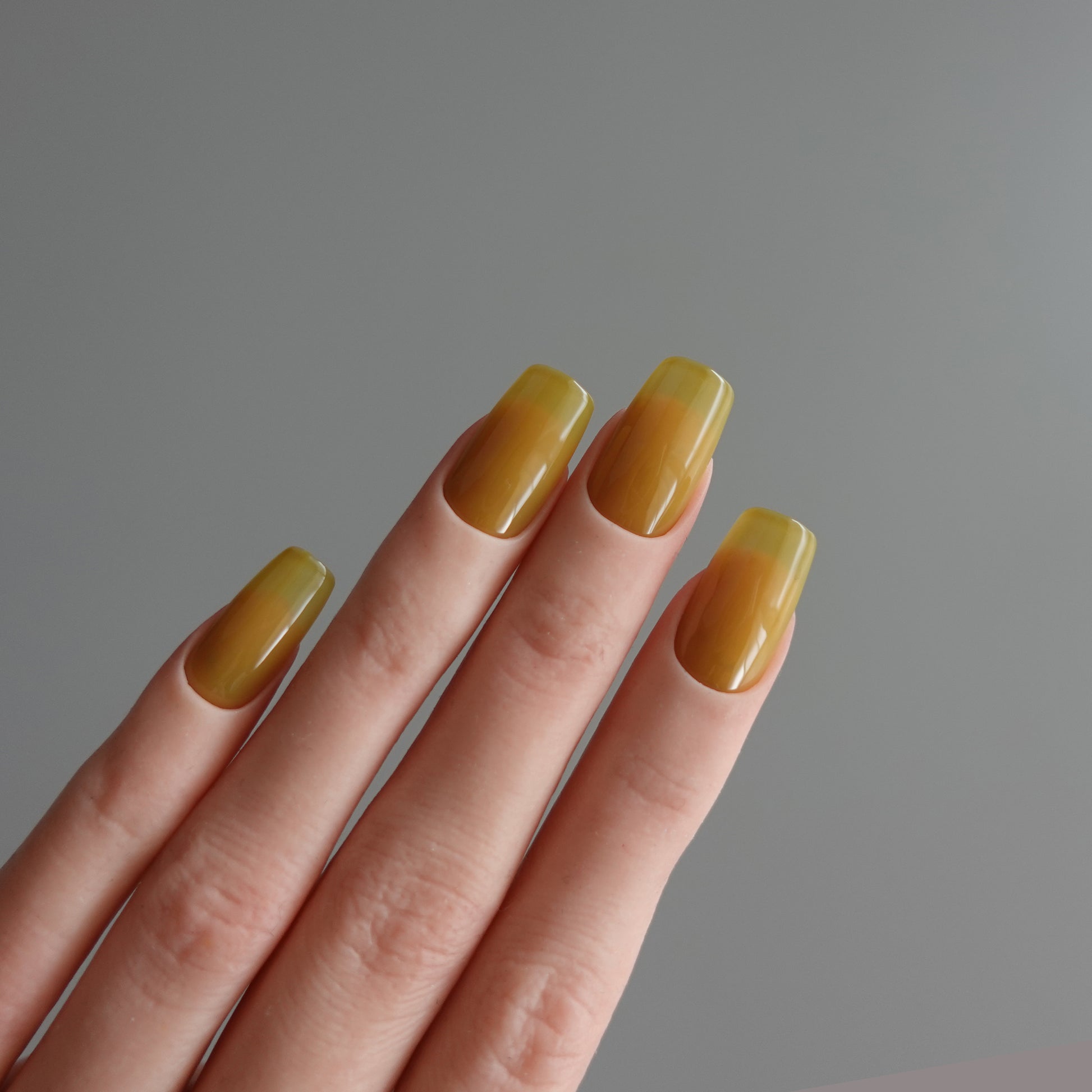 Honey Ember blends warm honey-yellow tones with a soft, translucent amber glow, creating a rich yet luminous shade inspired by golden syrup and late-autumn light.