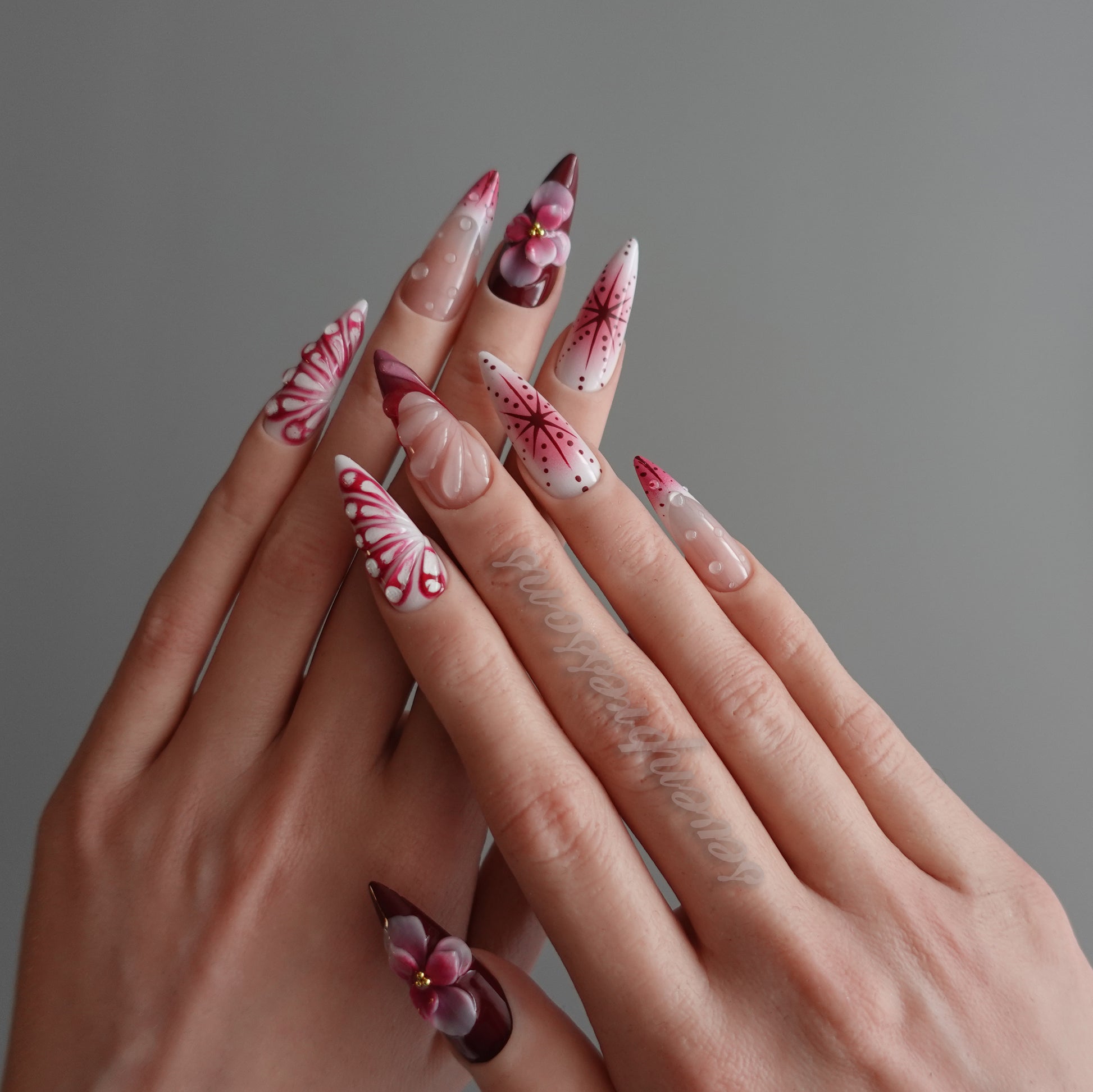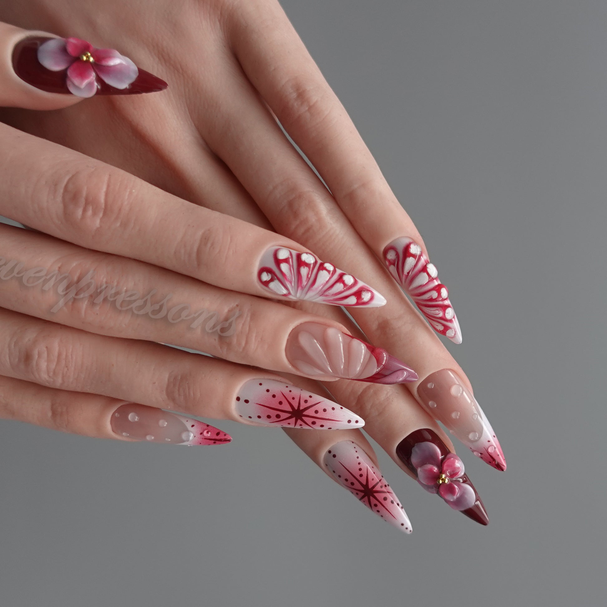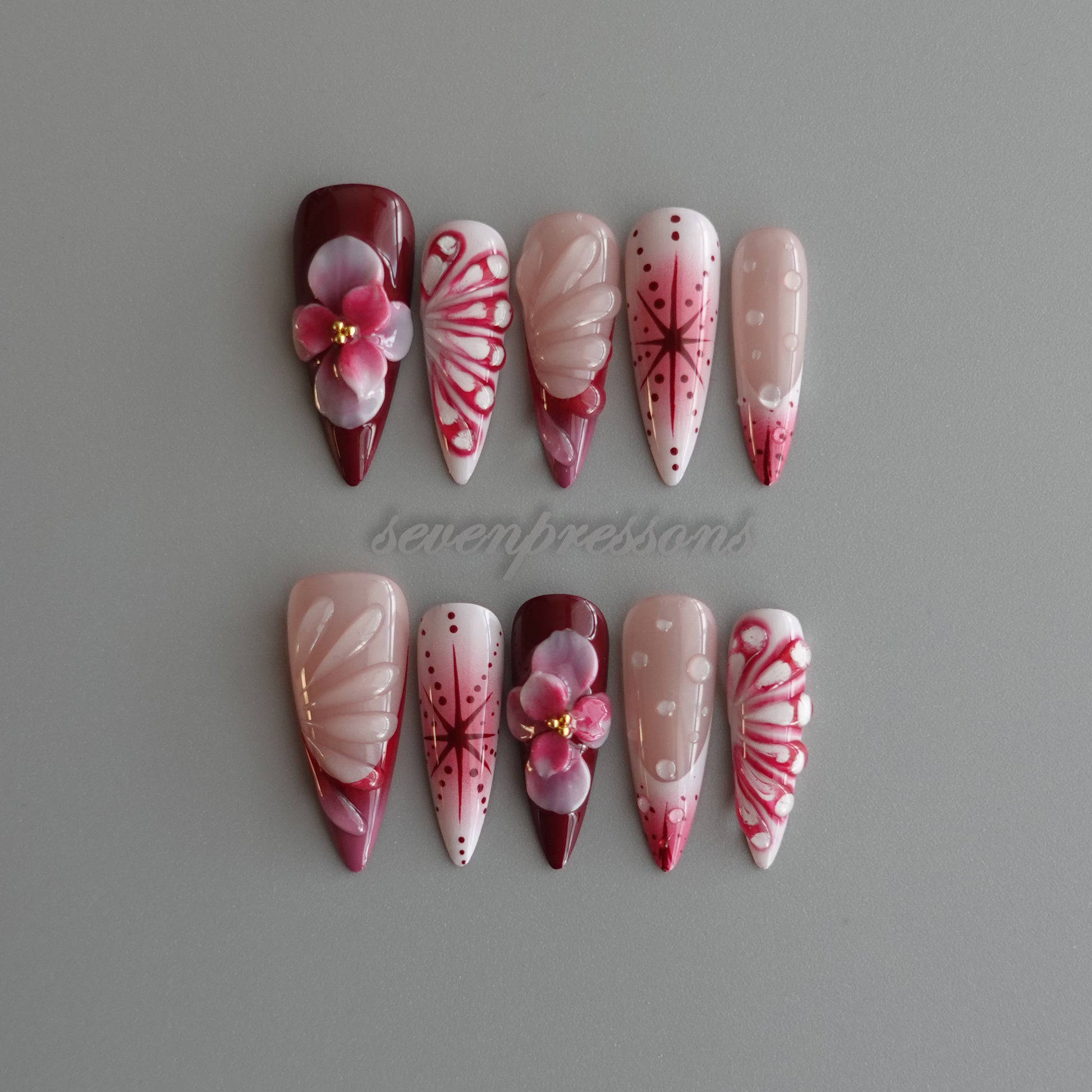 Seven Treasures nails are custom-made works of nail art.
