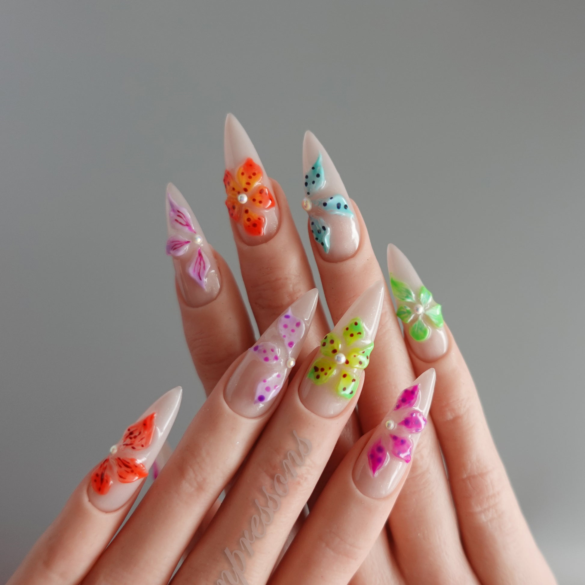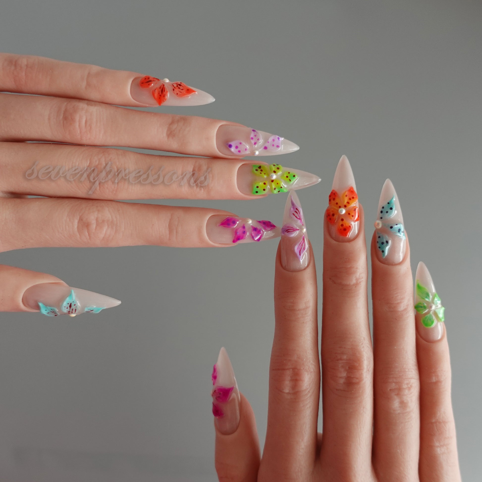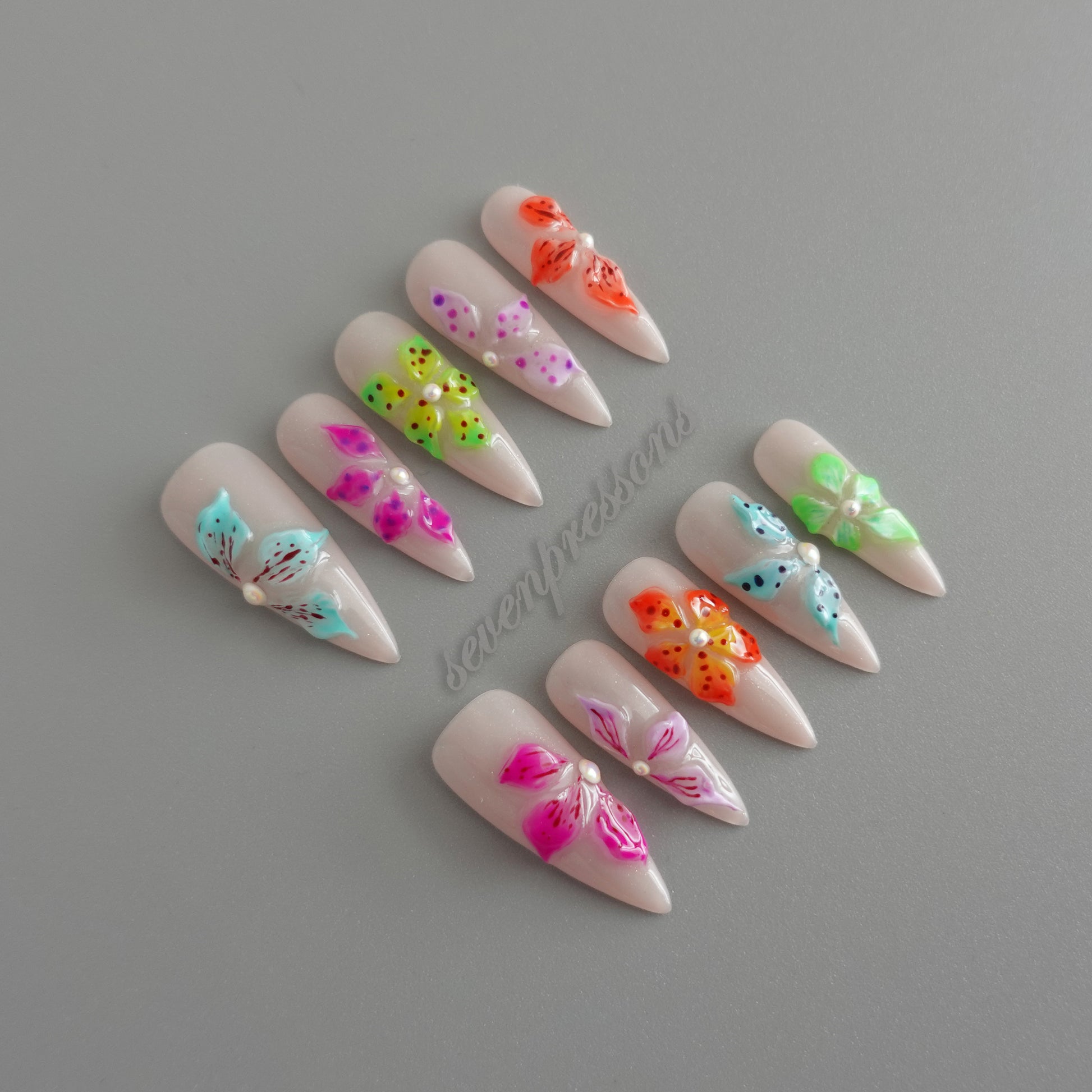Each nail is individually hand-painted and sculpted; subtle variations make each set uniquely yours.