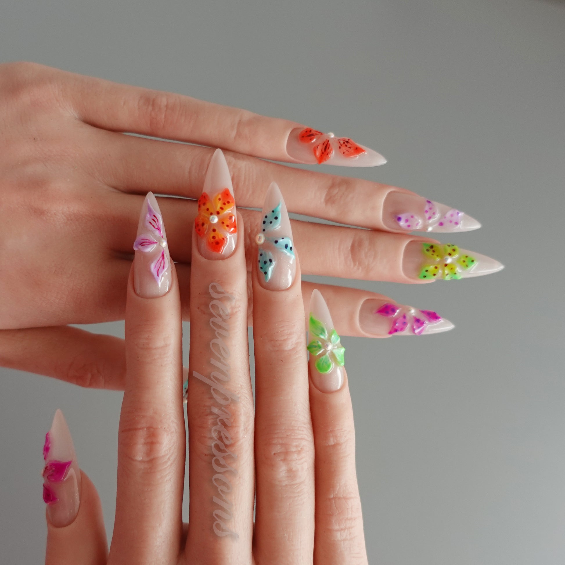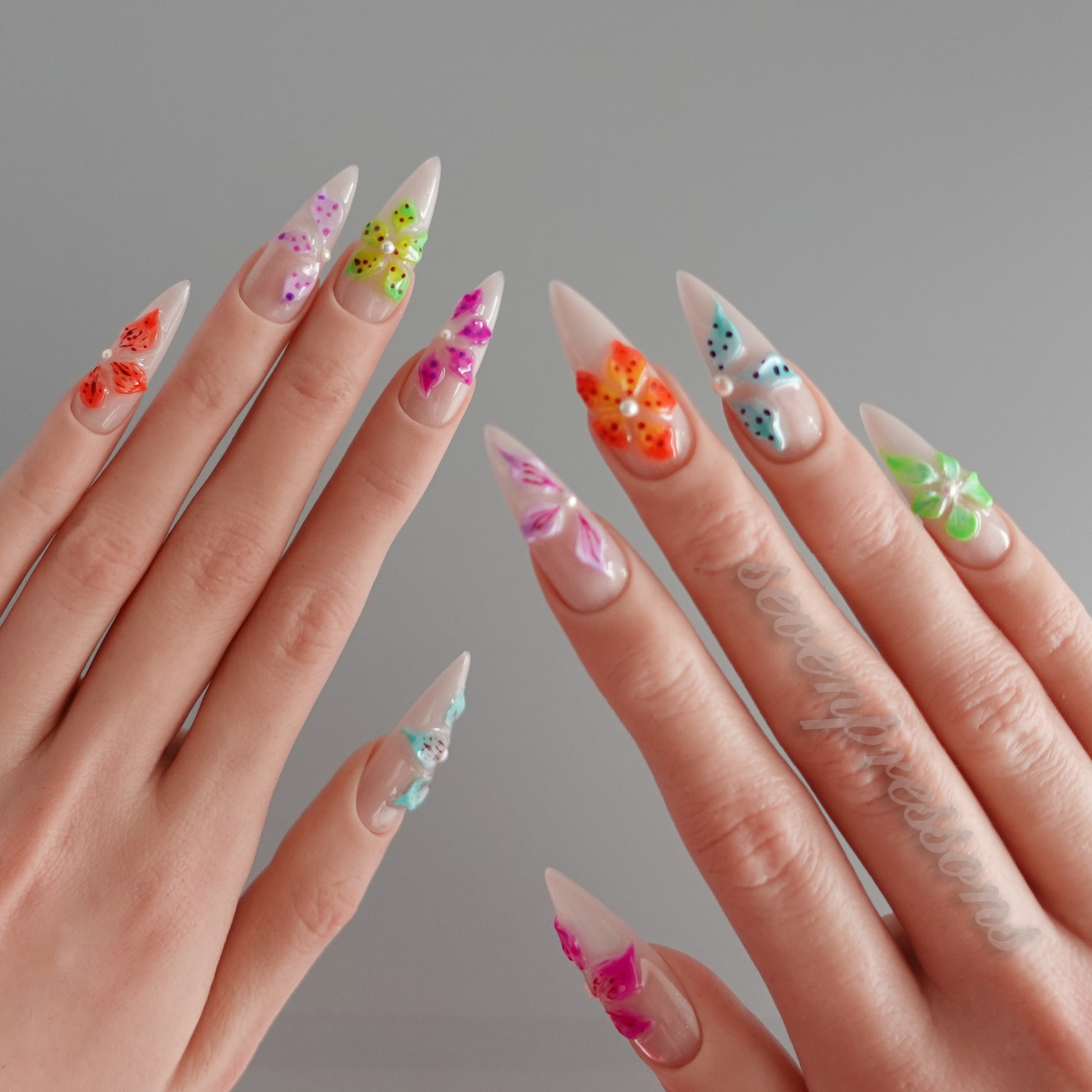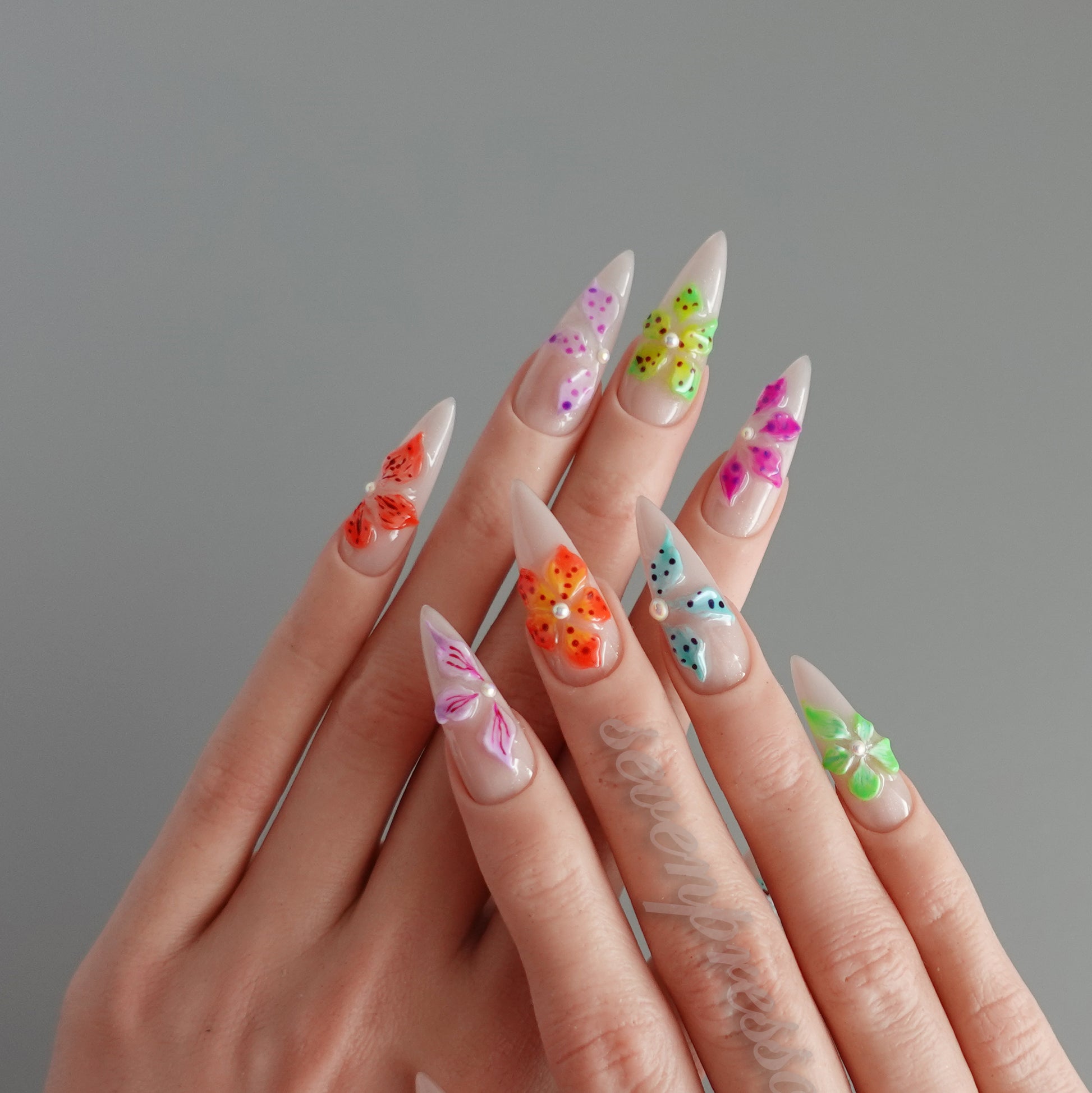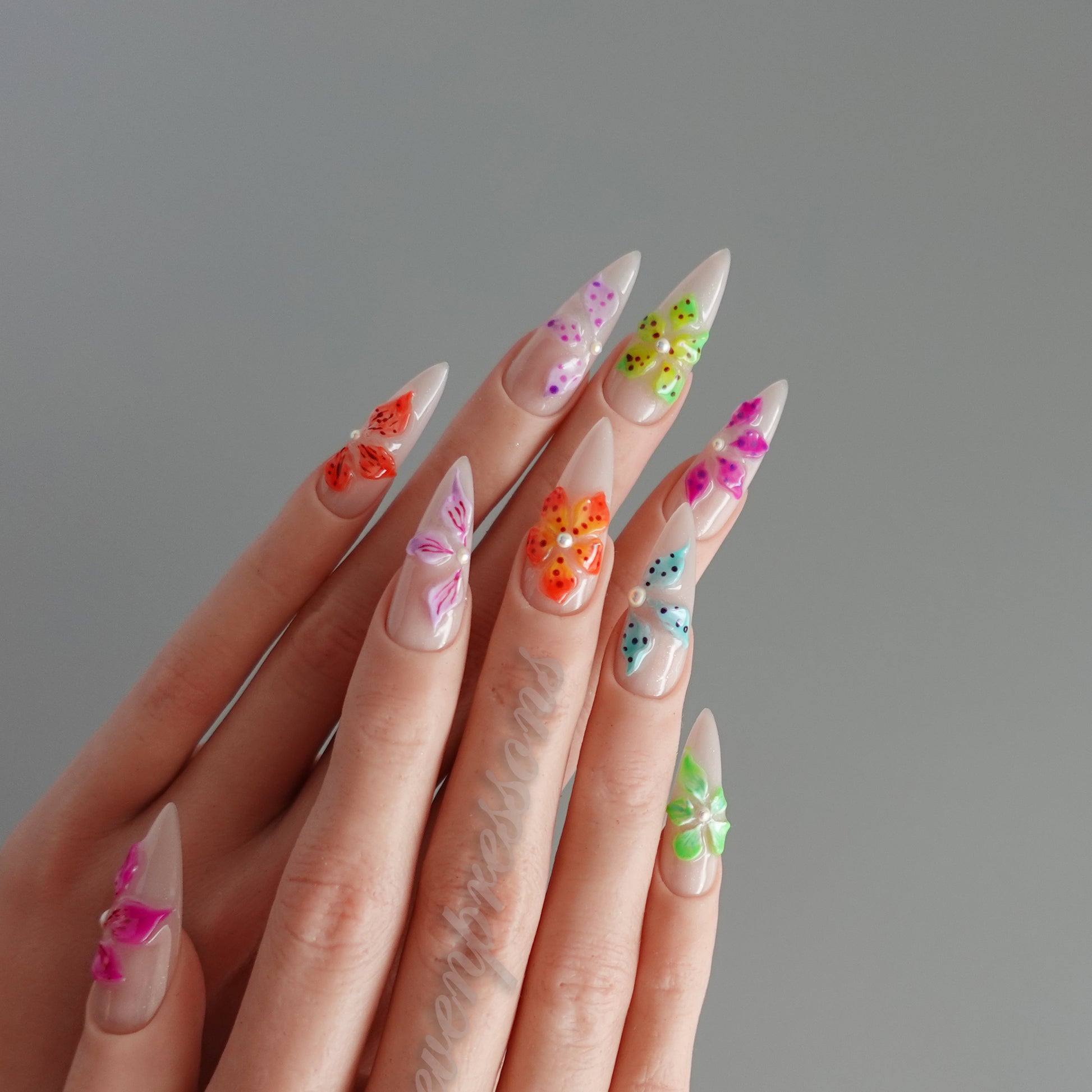 Each nail is individually hand-painted and sculpted; subtle variations make each set uniquely yours.