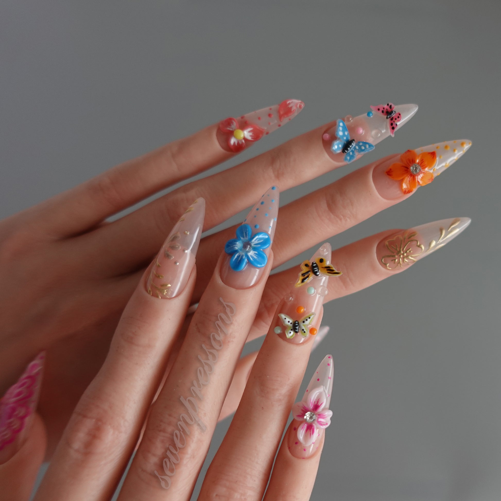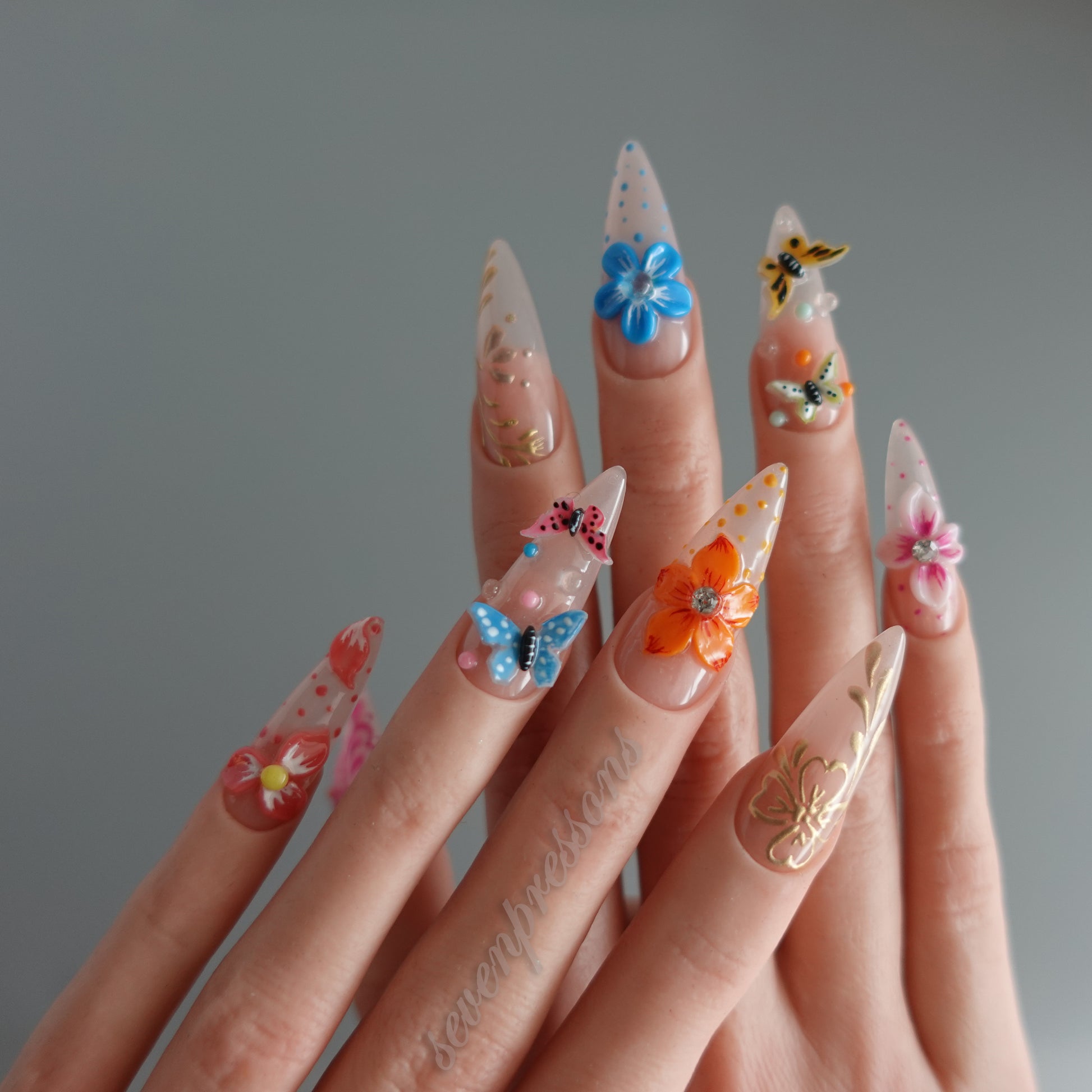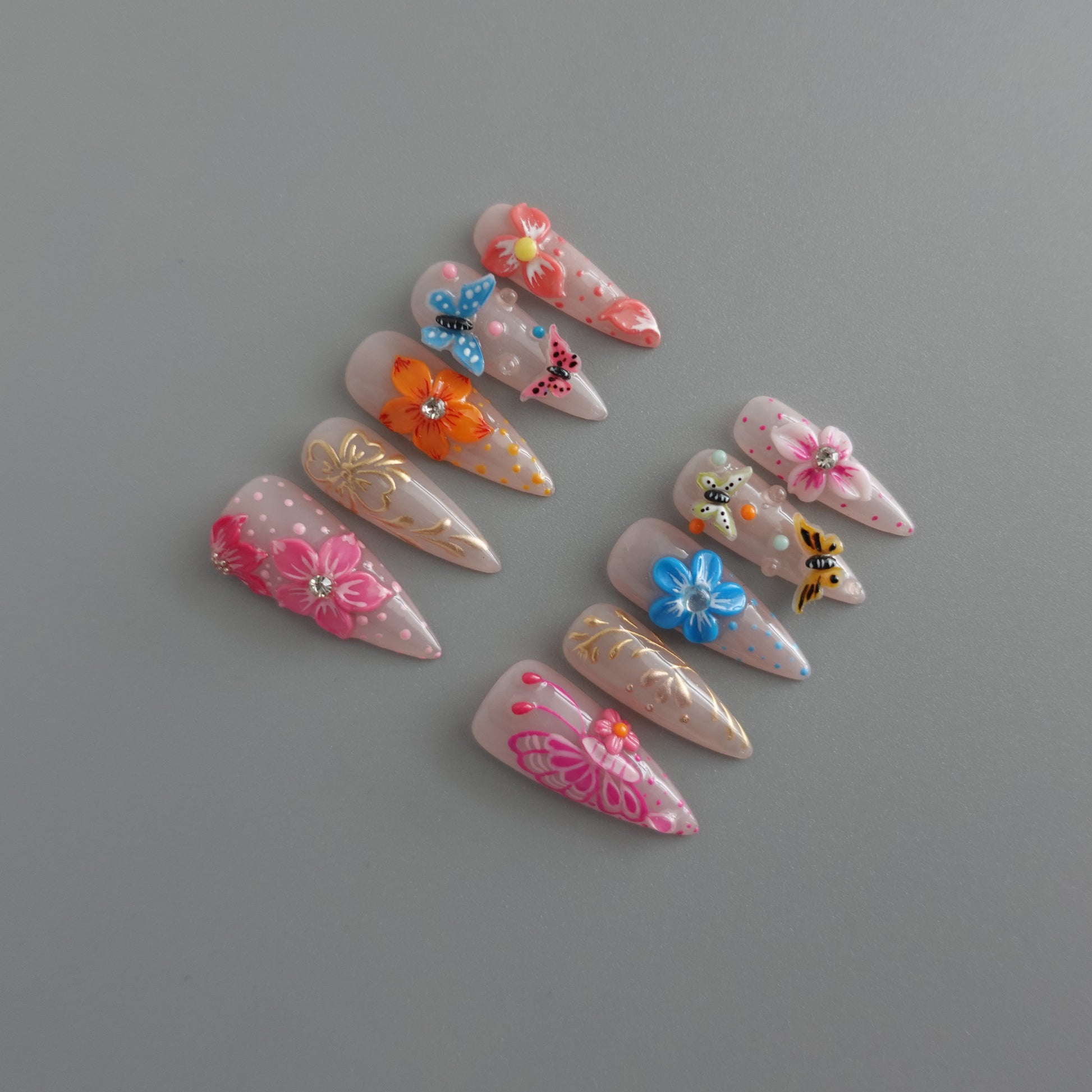 Each nail is individually hand-sculpted and painted โ small variations bring out its handcrafted charm.