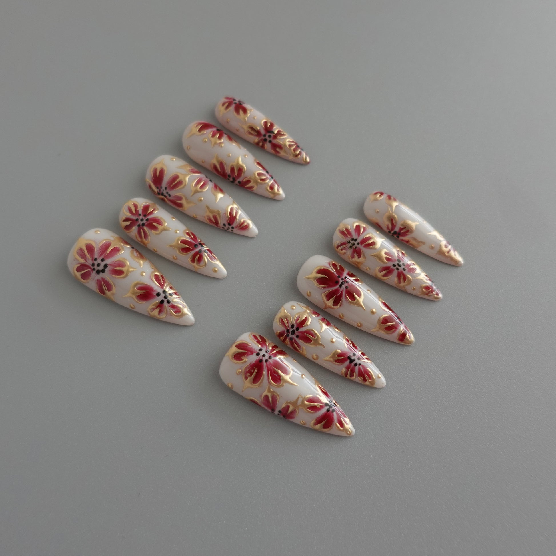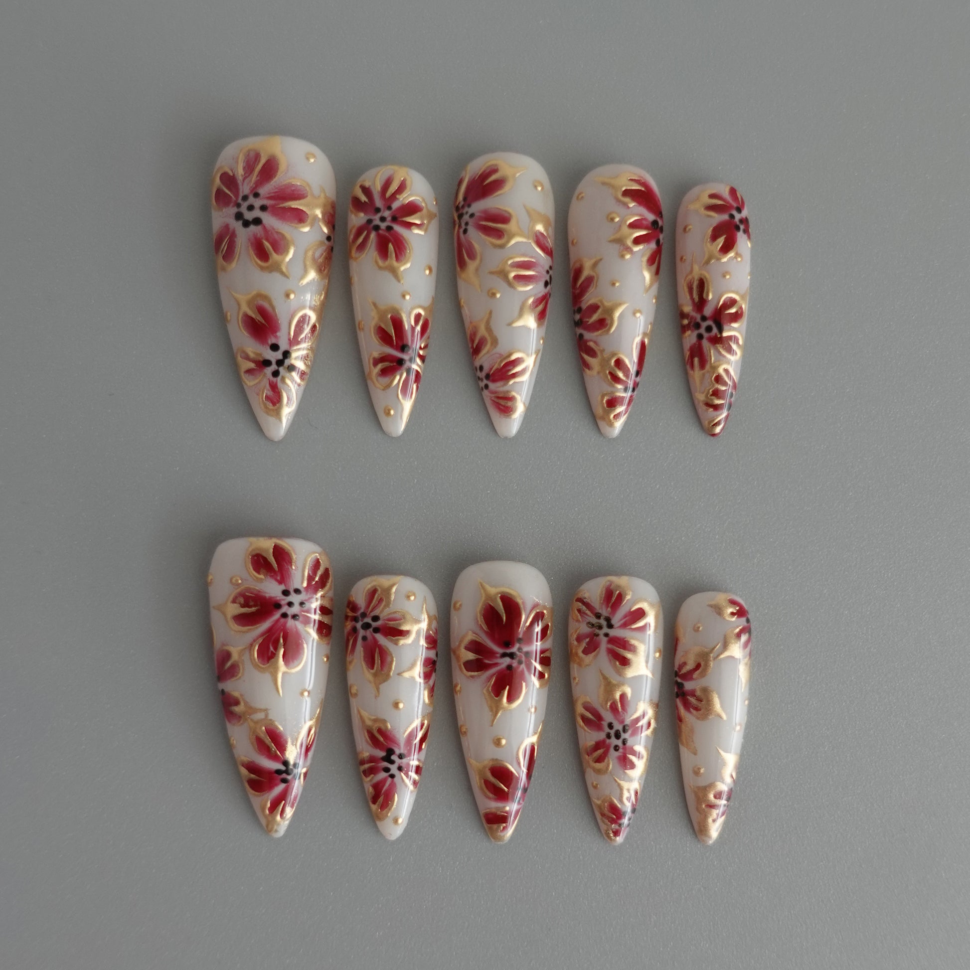 Each nail is individually hand-sculpted and painted โ small variations bring out its handcrafted charm.