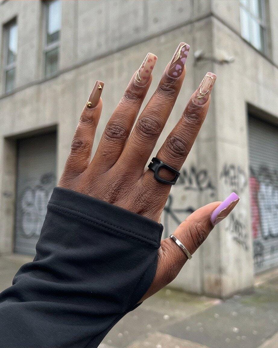 Hints of mauve, beige, and rose-brown blend seamlessly with hand-sculpted metallic accents, evoking the feeling of pressed flowers preserved in gold. It’s the perfect balance of sweet charm and elevated minimalism — wearable enough for everyday, refined enough for special occasions.
