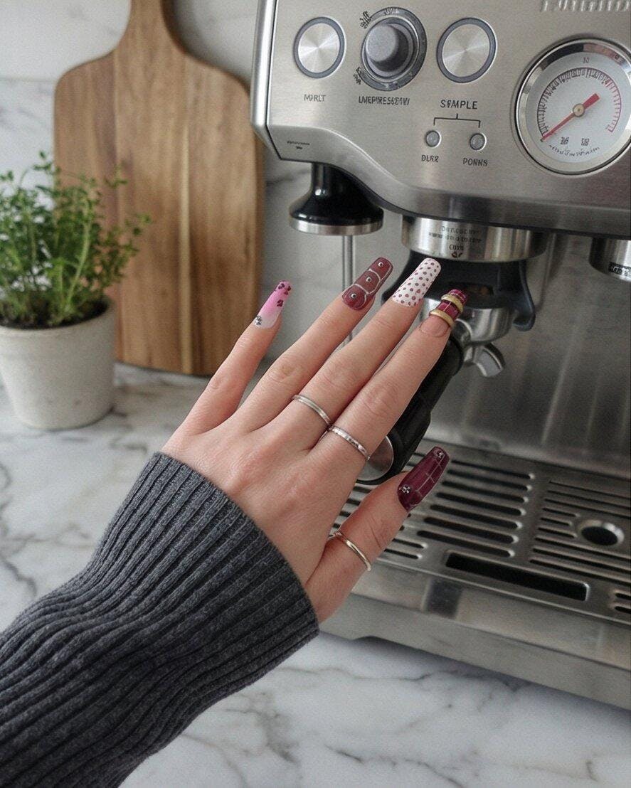 Each nail is individually hand-painted and sculpted; subtle variations make each set uniquely yours.