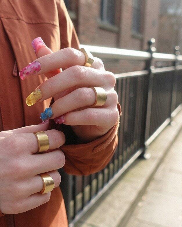 Each nail is individually hand-sculpted and painted — small variations bring out its handcrafted charm.