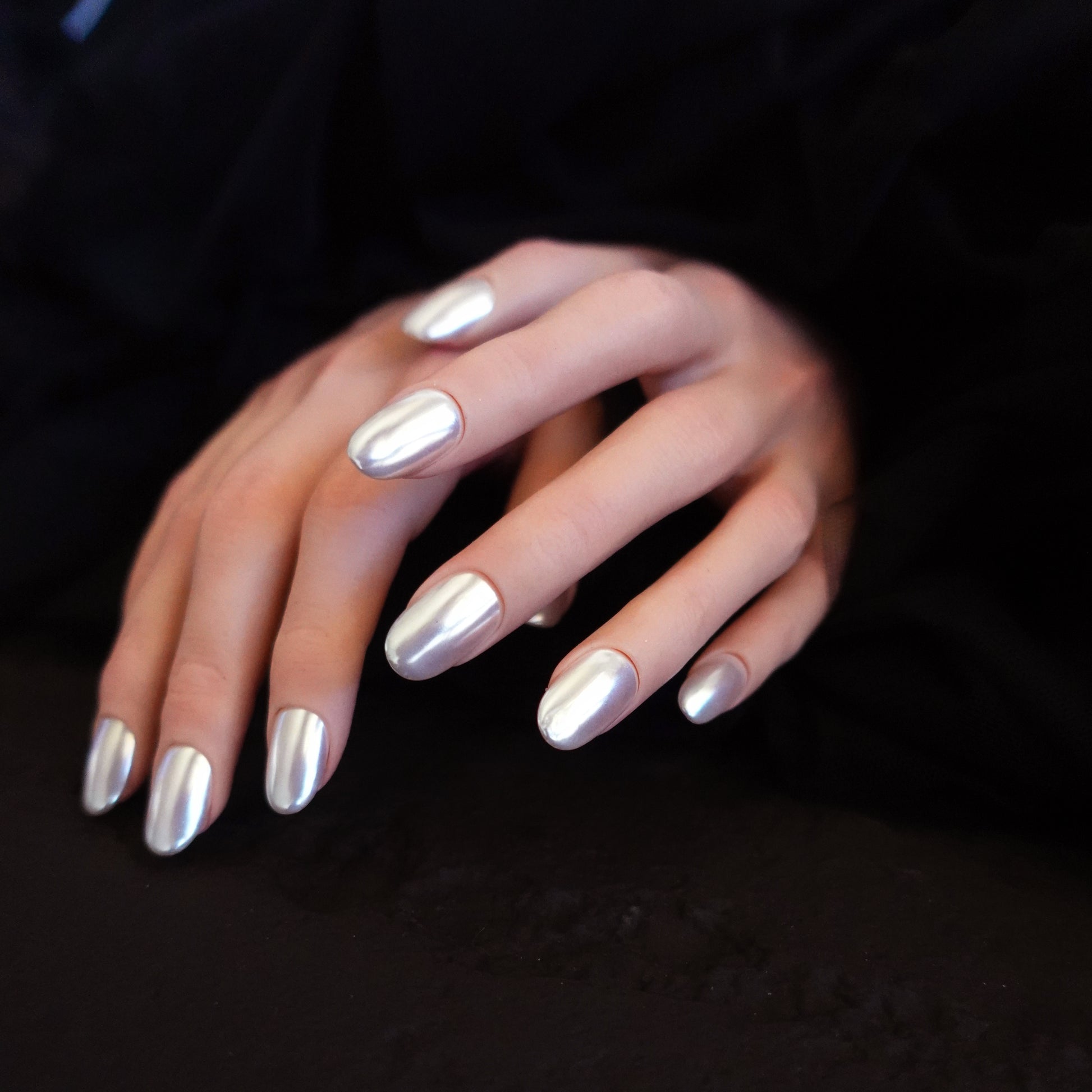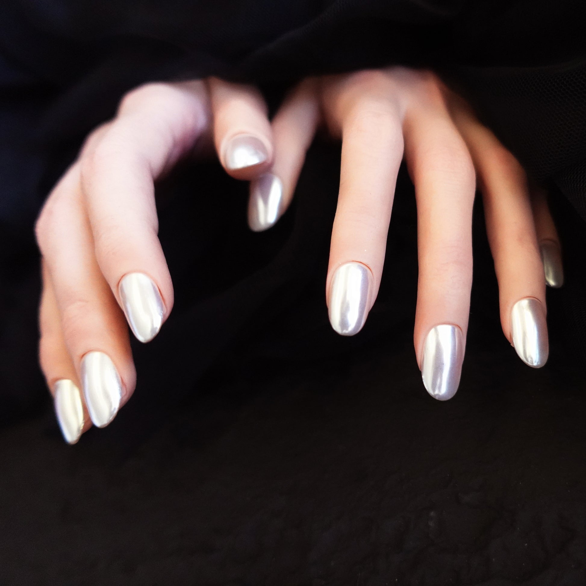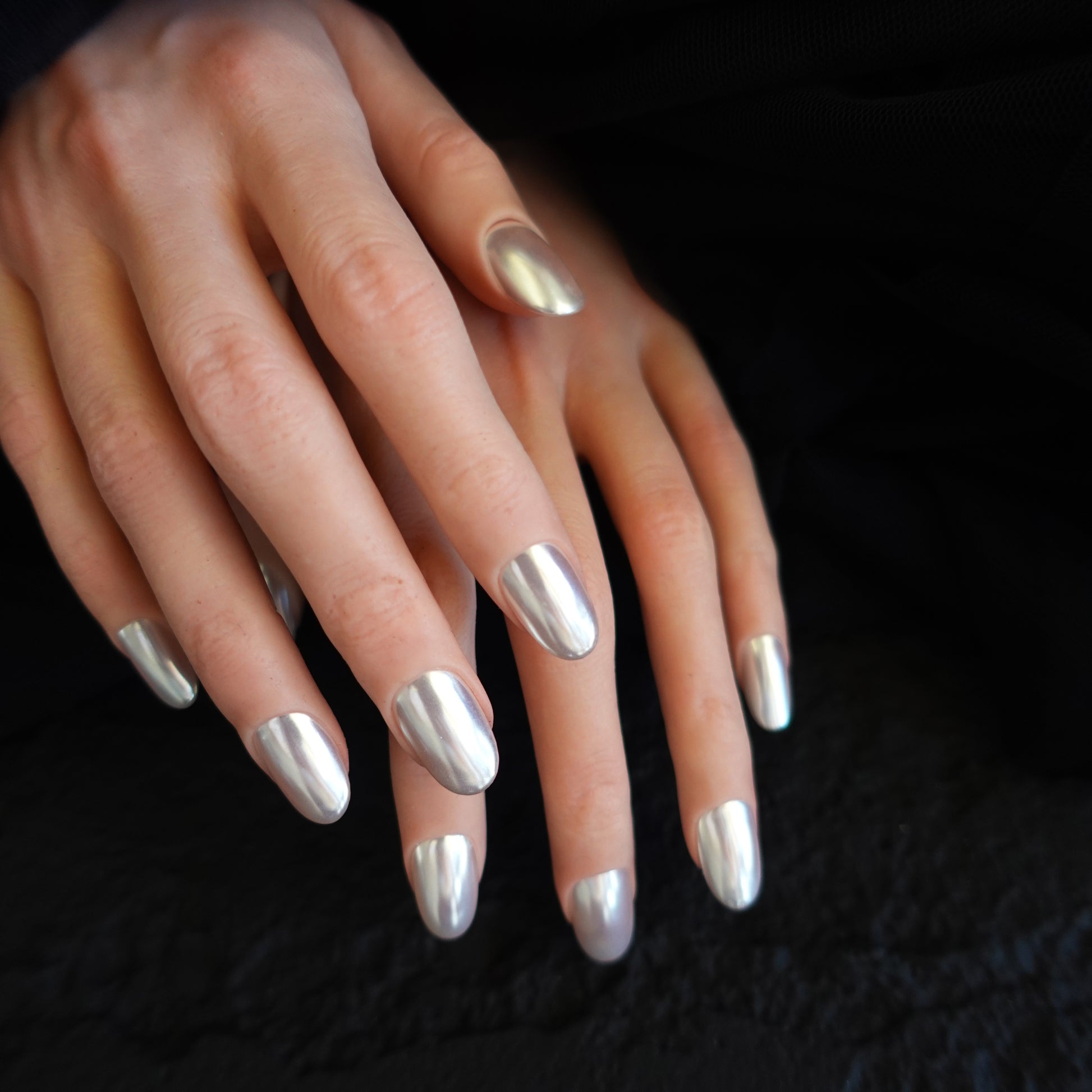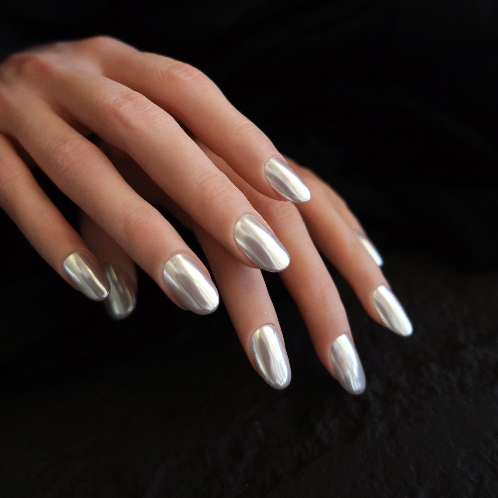 Like moonlight caught in metal, Lunar Veil is a veil of liquid chrome that wraps your fingertips in cool luminosity.