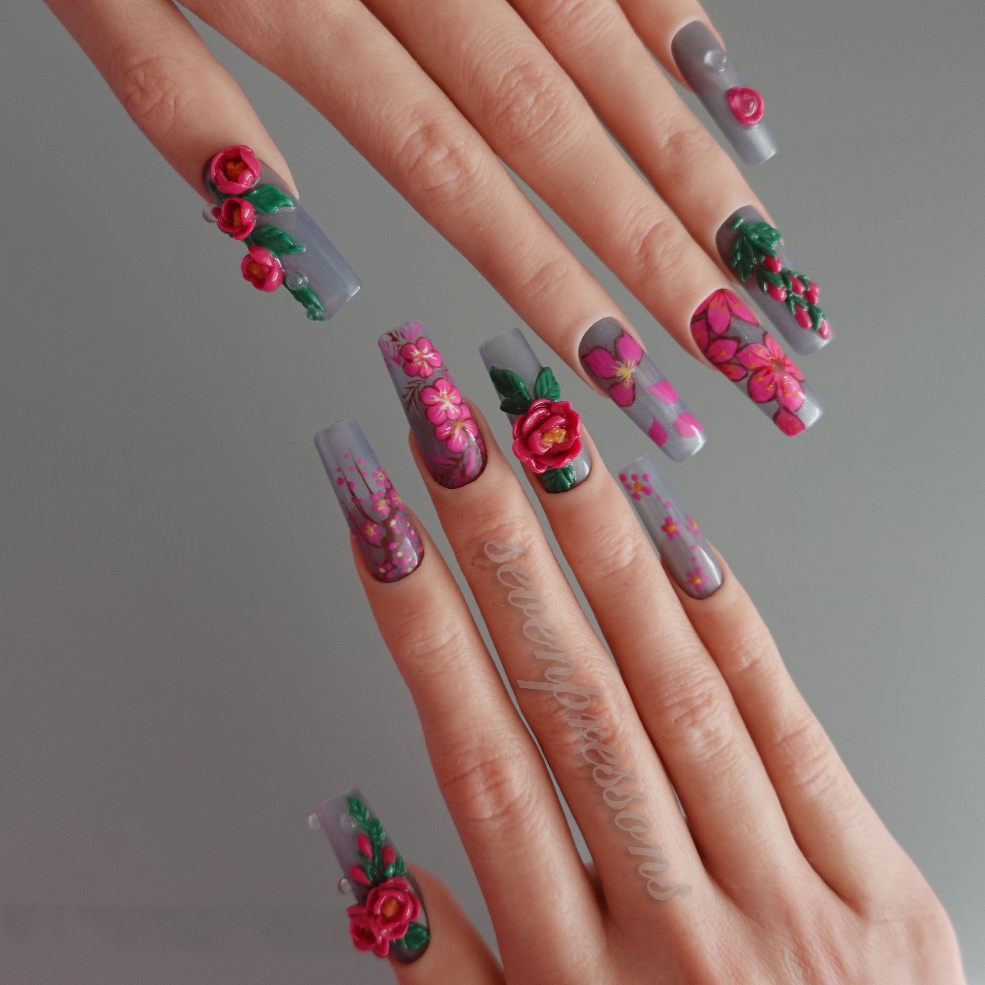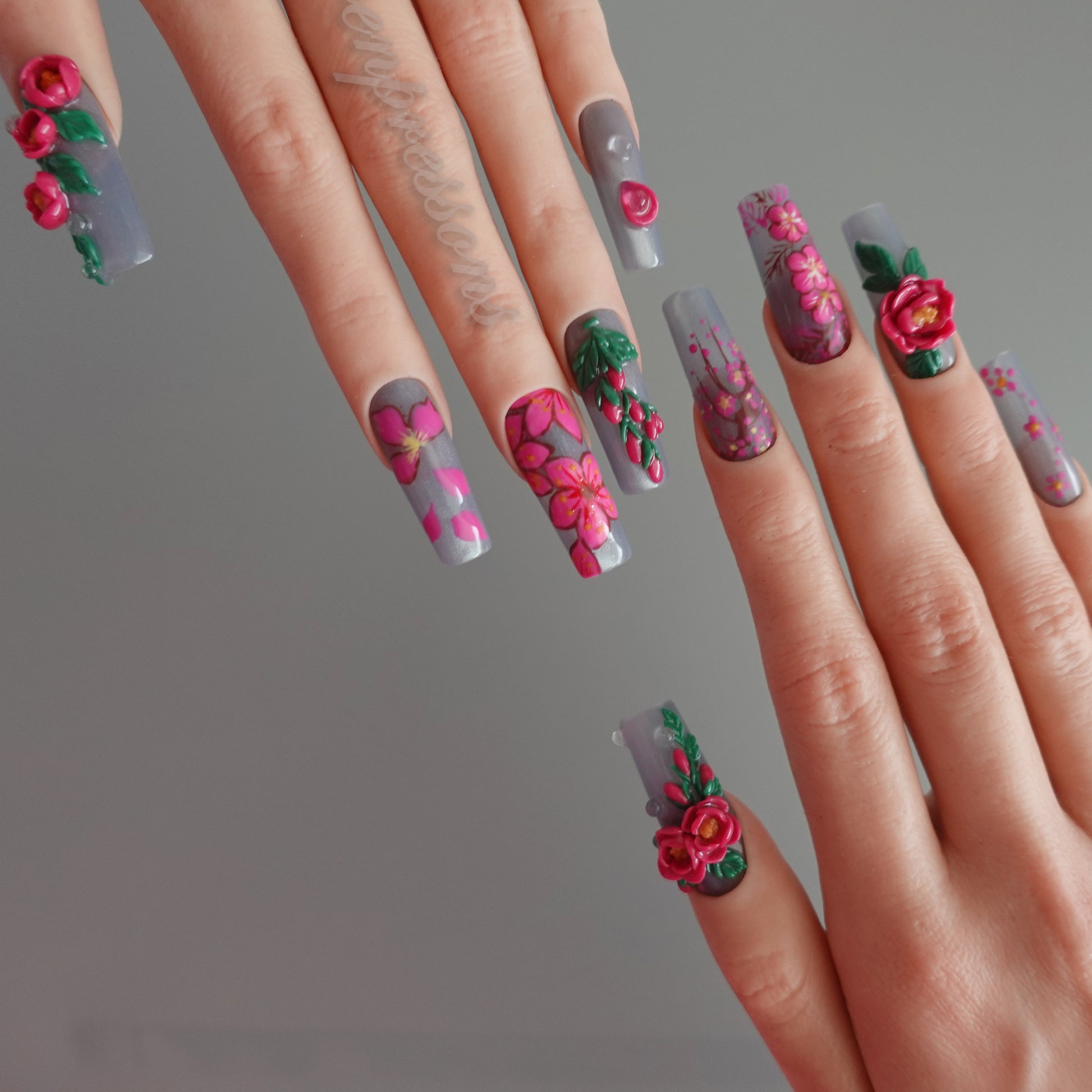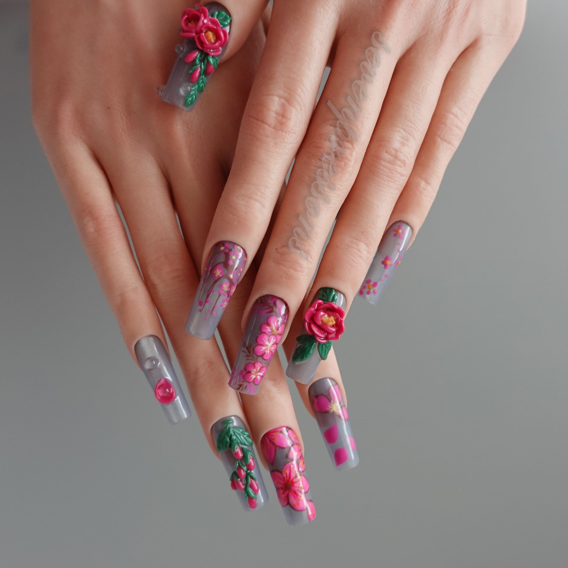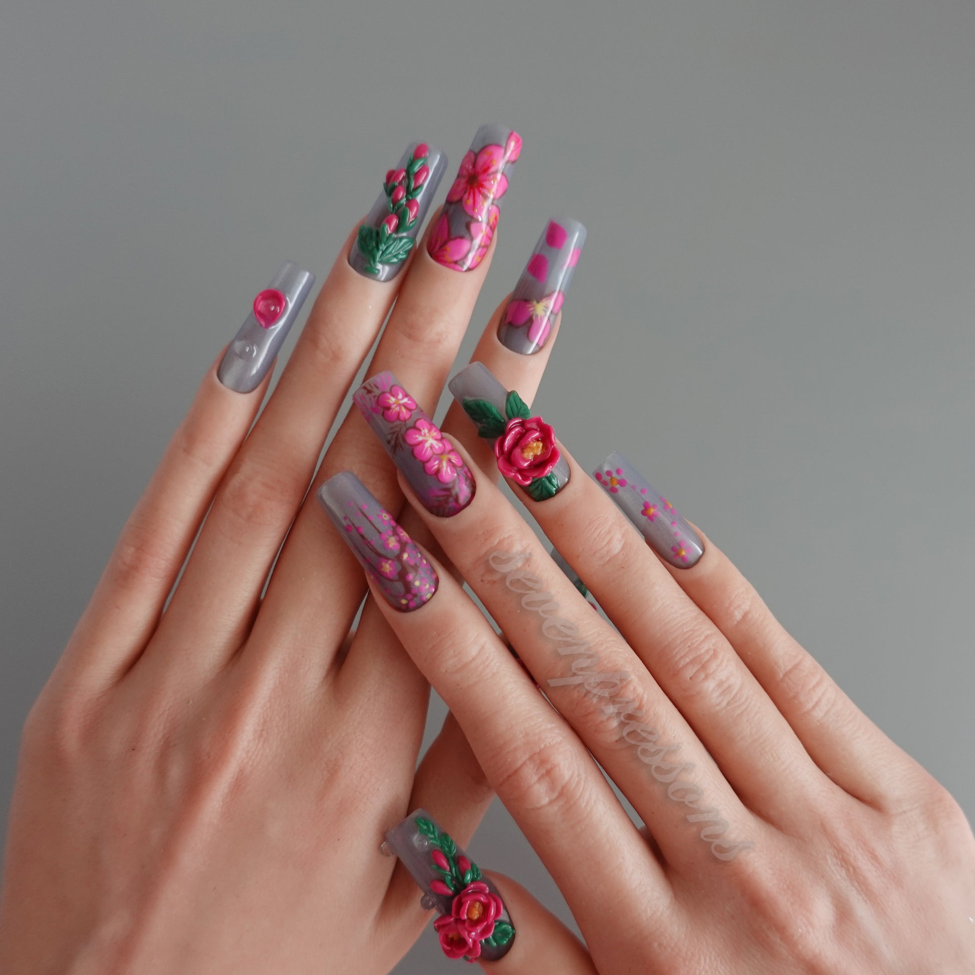 Each nail is individually hand-sculpted and painted โ small variations bring out its handcrafted charm.