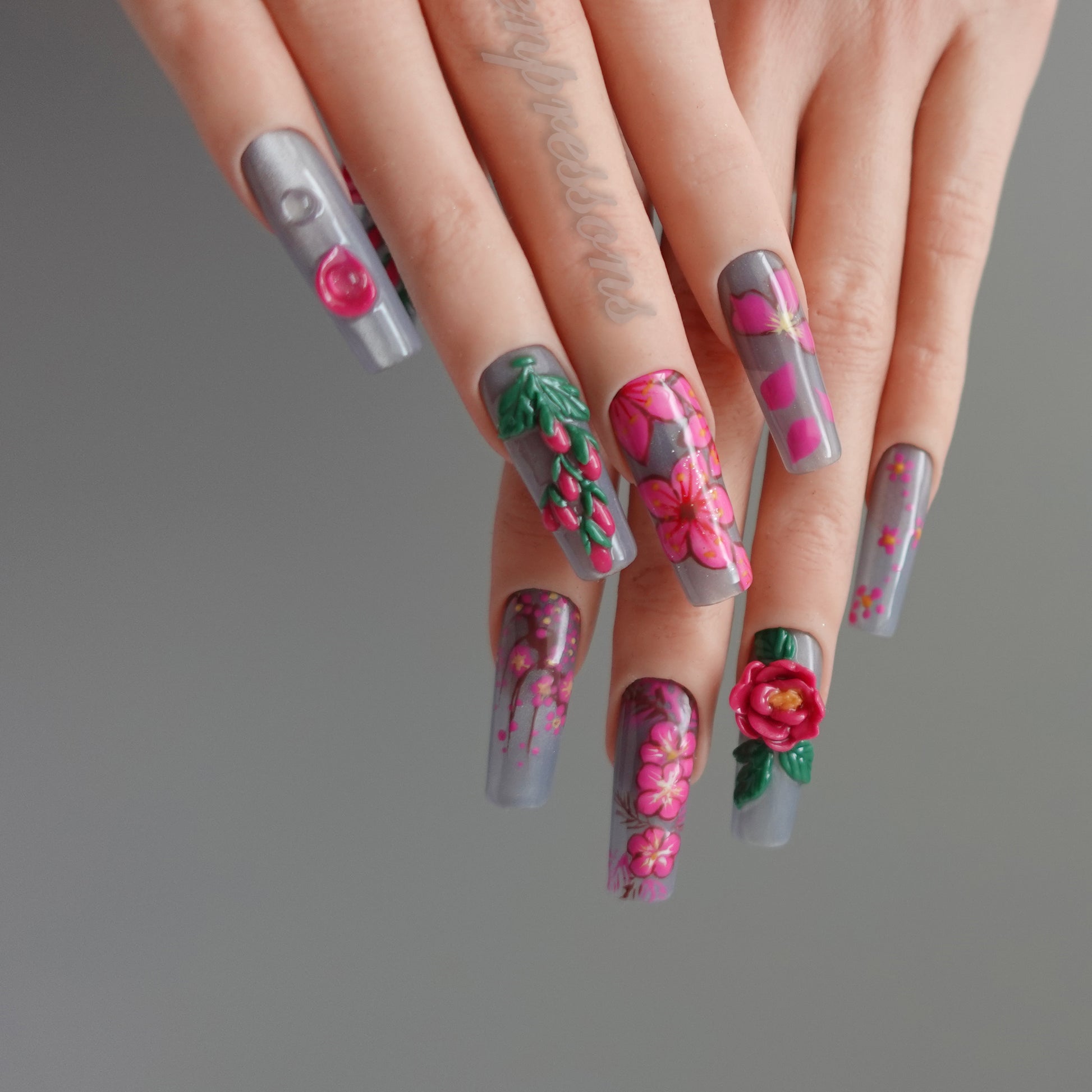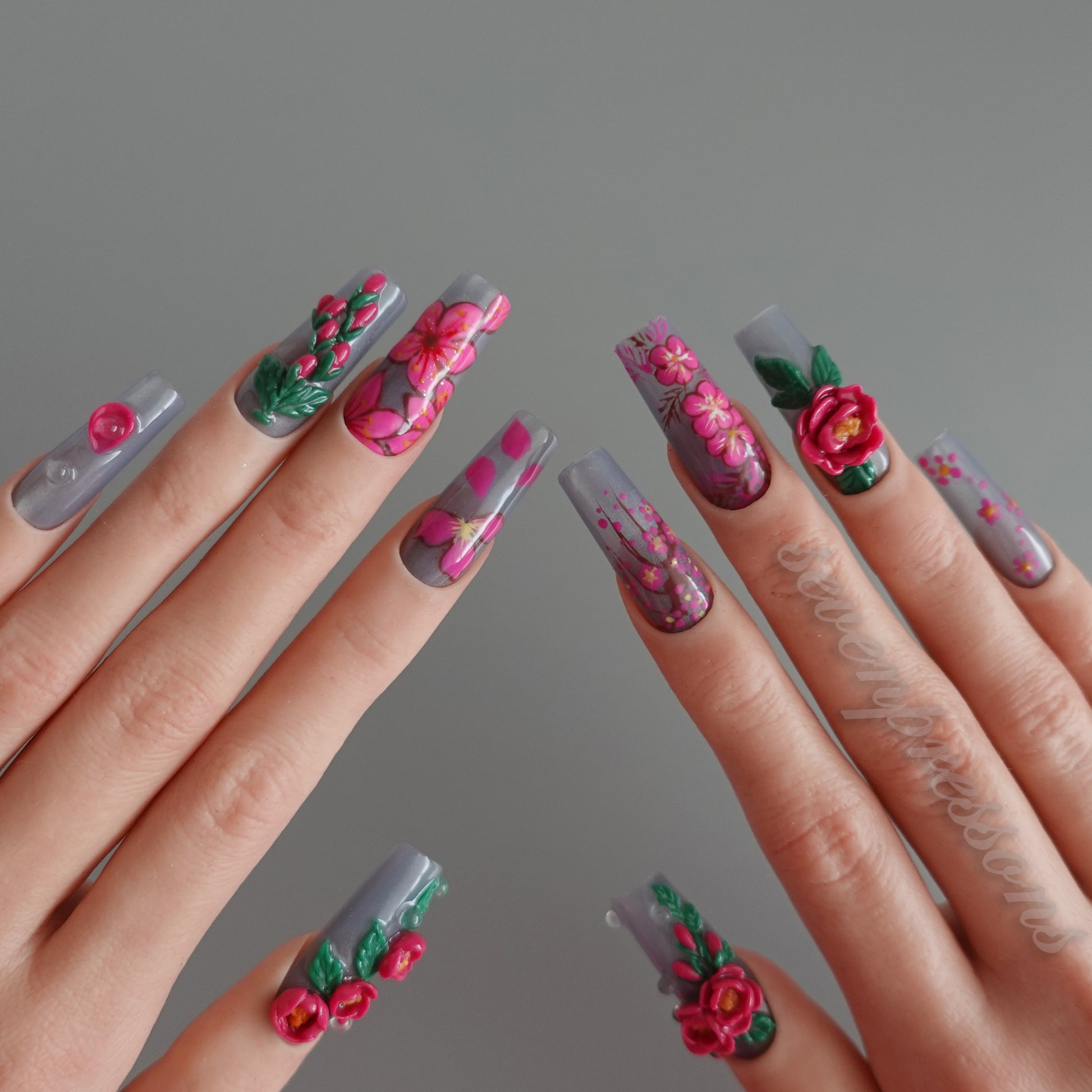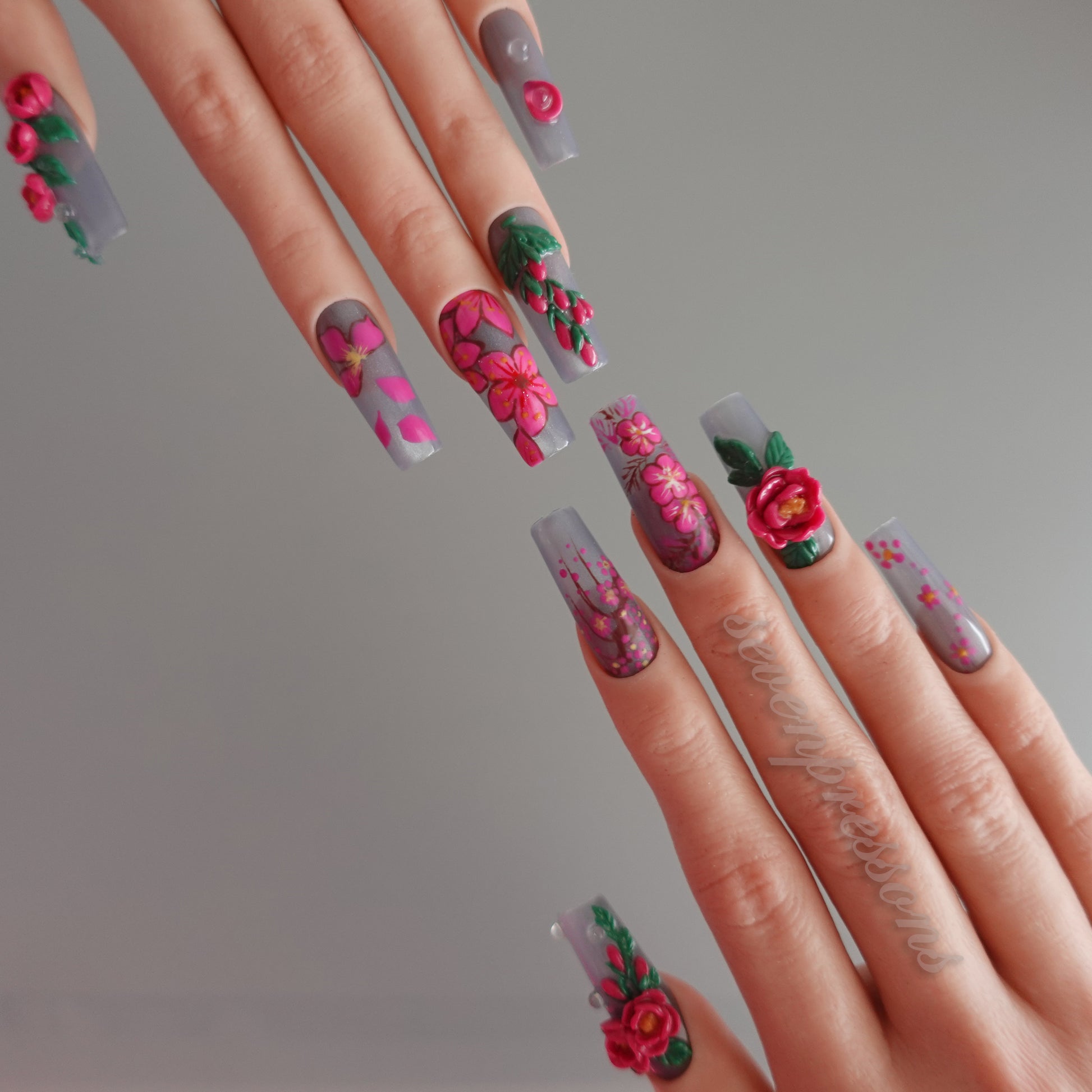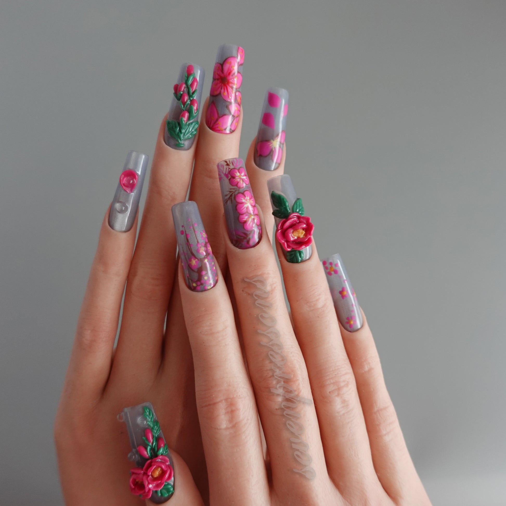 Each nail is individually hand-sculpted and painted โ small variations bring out its handcrafted charm.