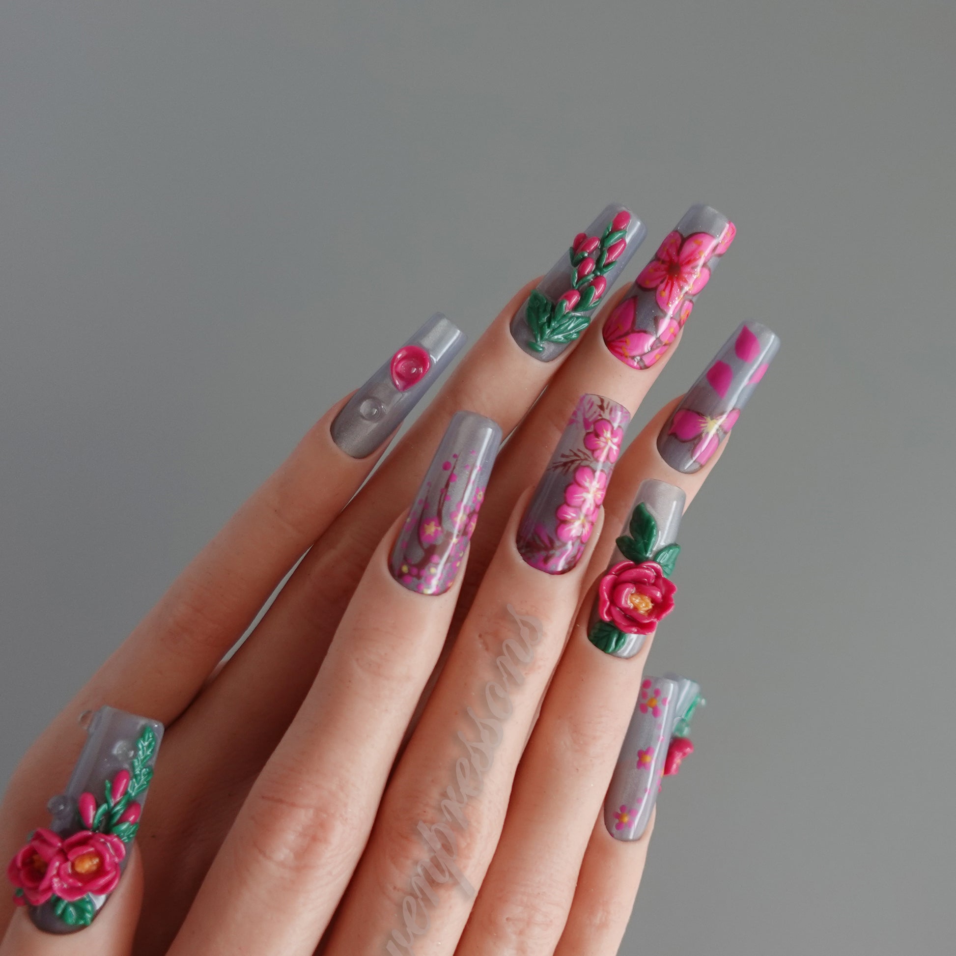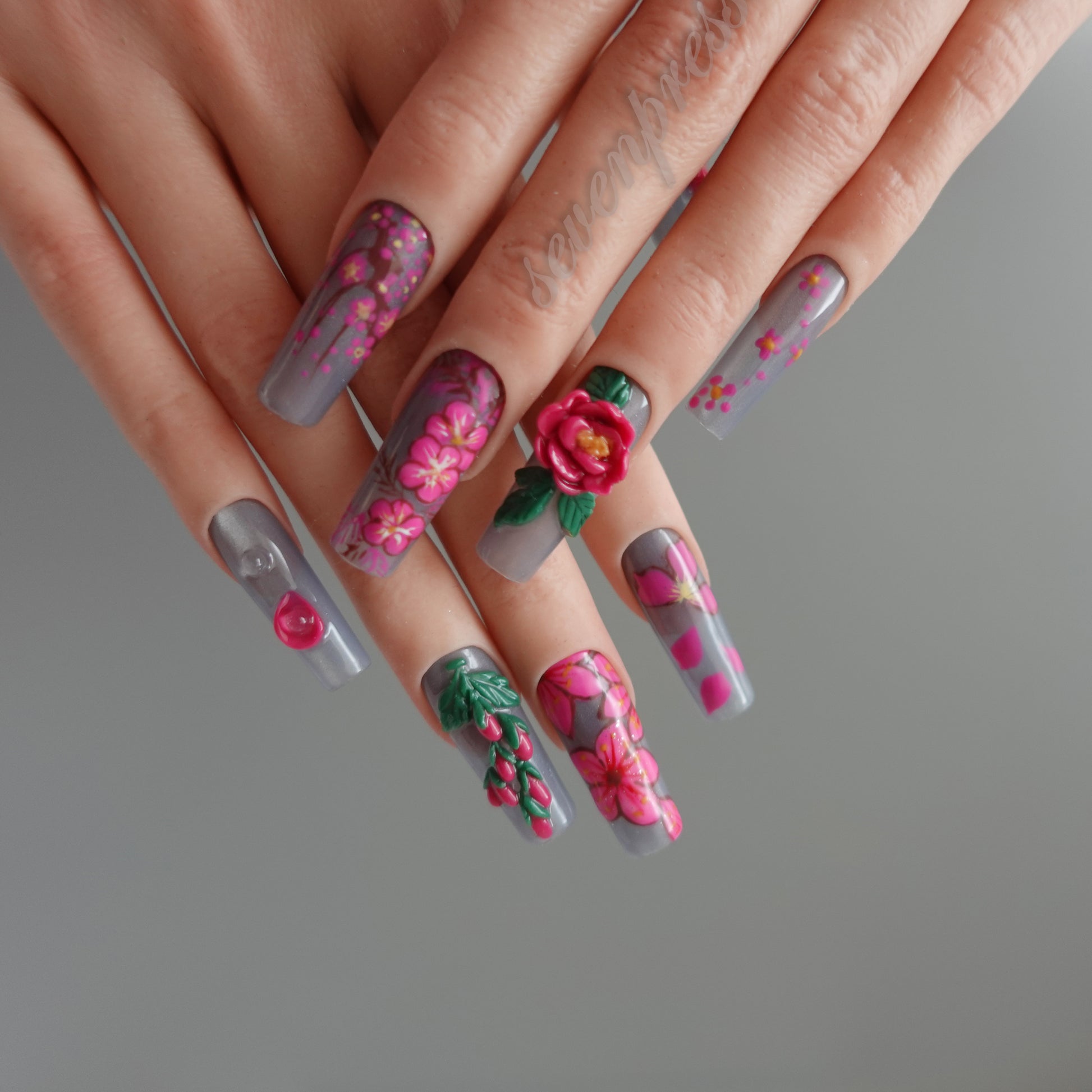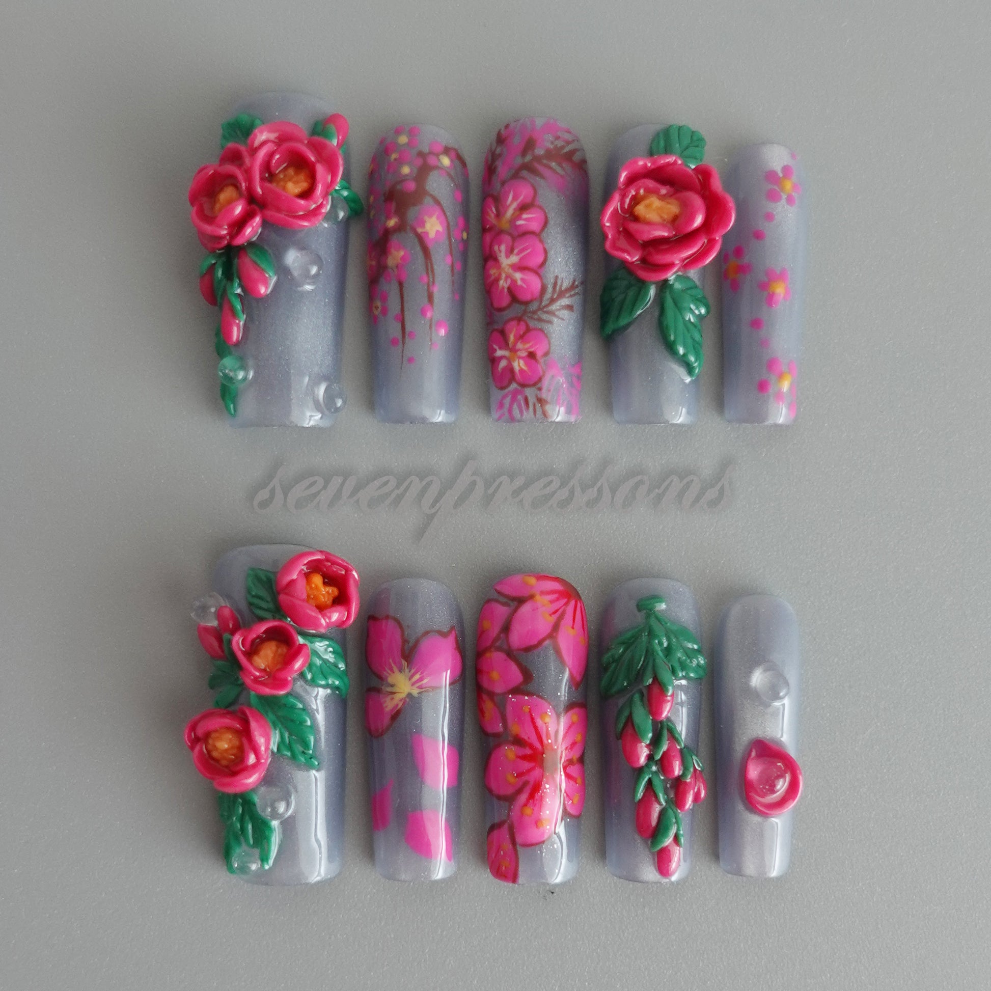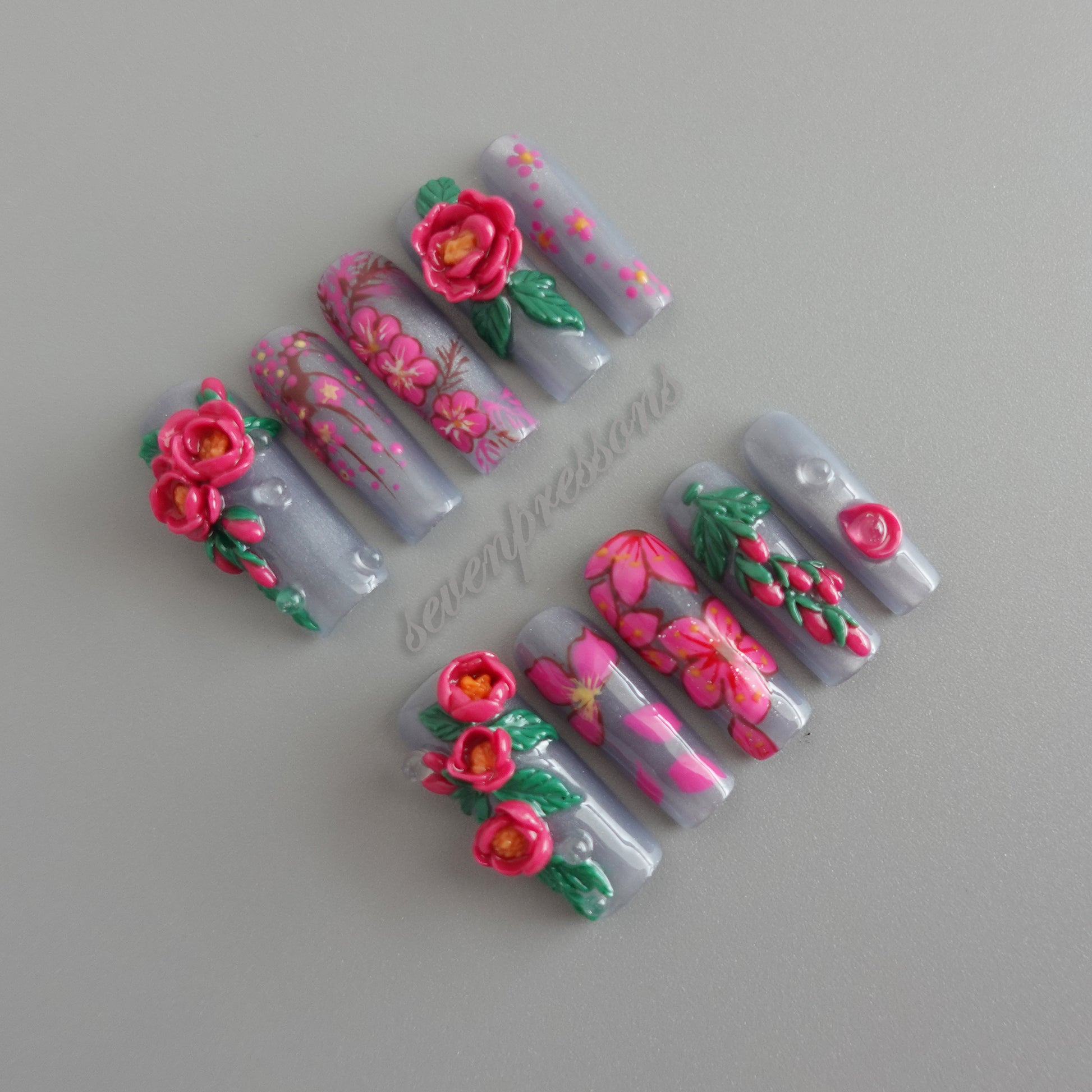 Each nail is individually hand-sculpted and painted โ small variations bring out its handcrafted charm.