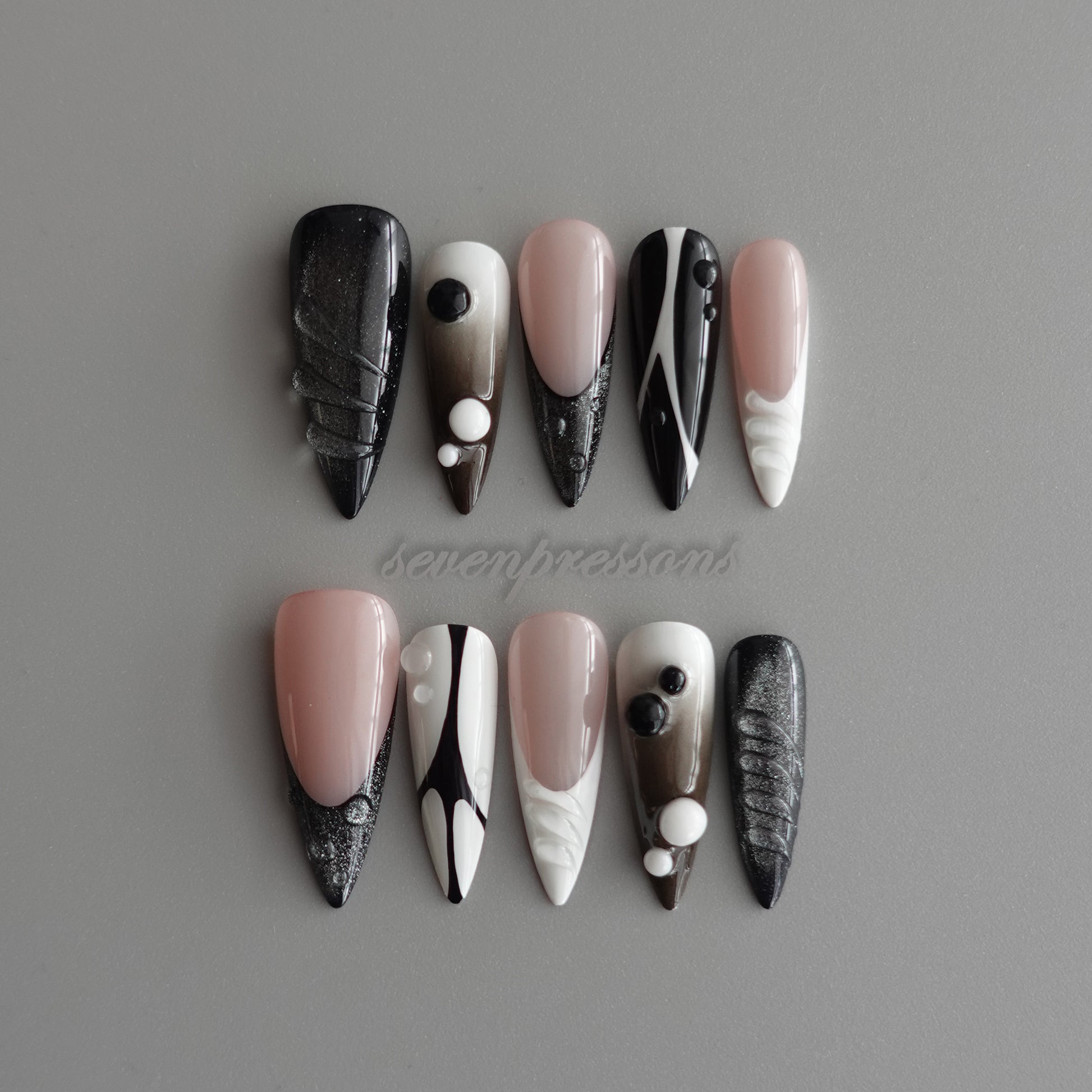 Seven Treasures nails are custom-made works of nail art.