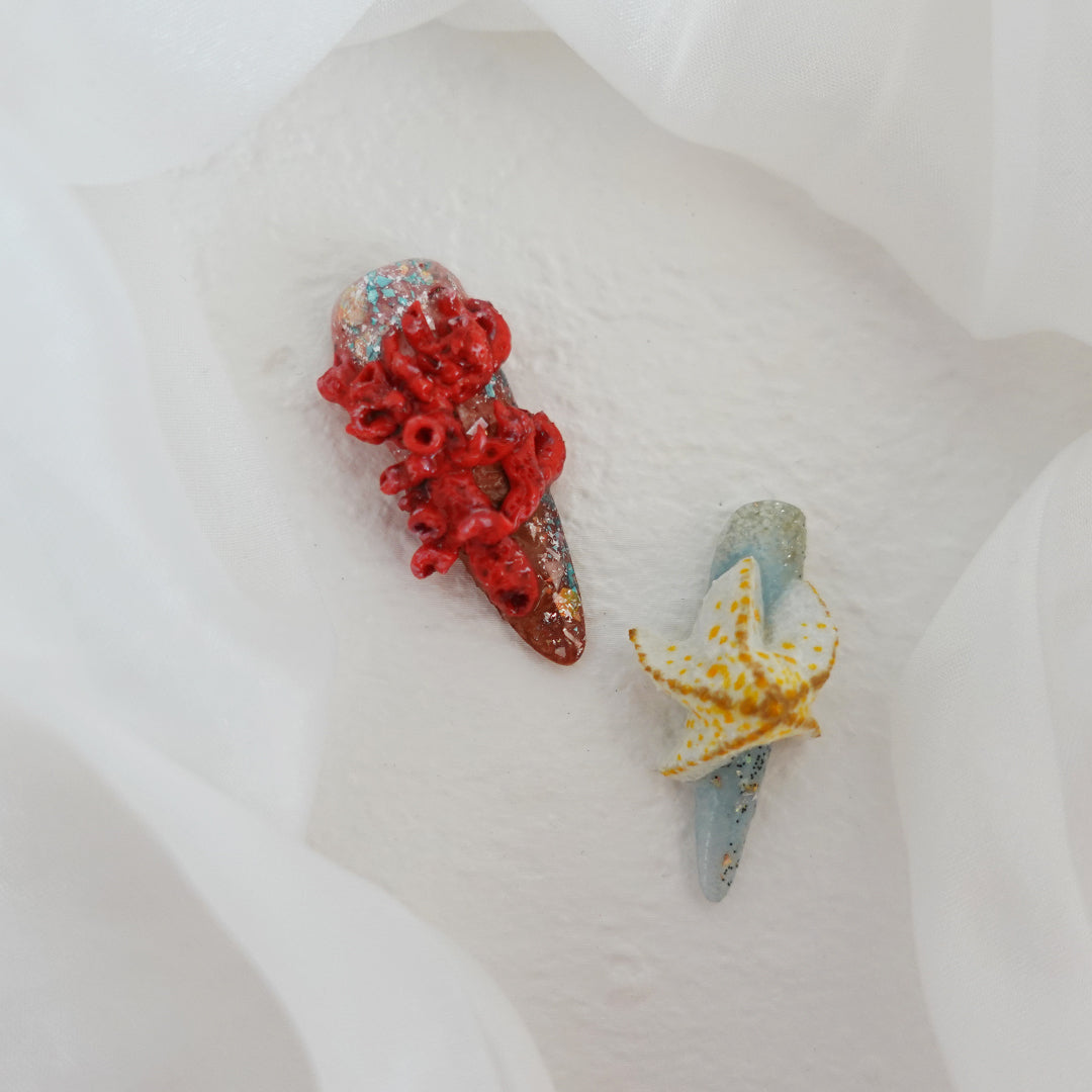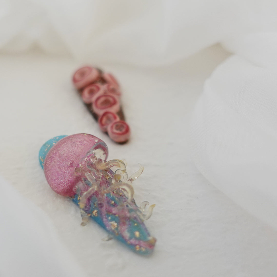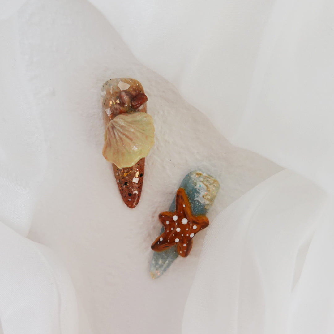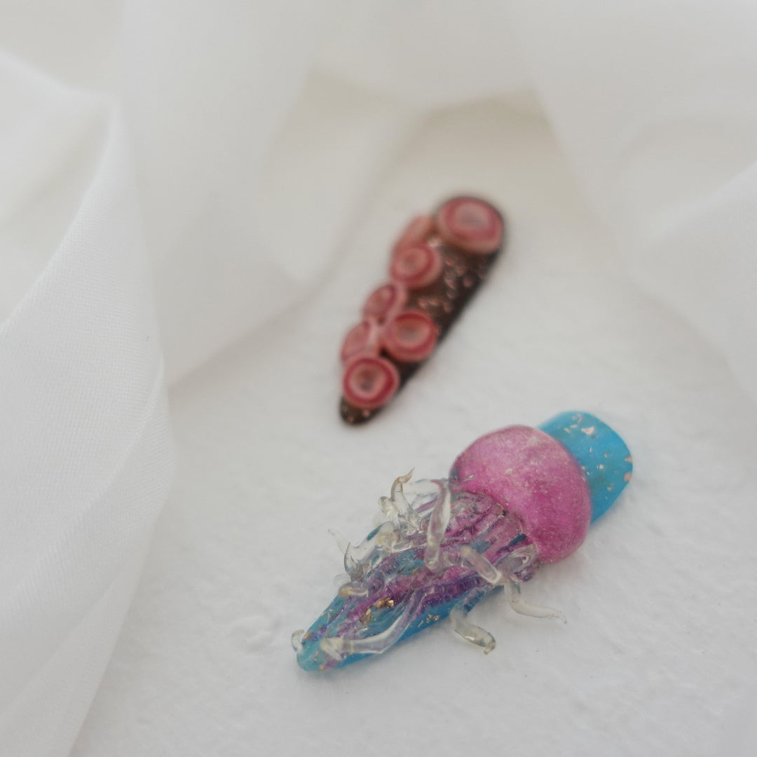 Channel the magic of the ocean with Ocean Oddity, a surreal and sculptural press-on nail set that captures the wild, weird beauty of deep-sea life. Each handmade nail is a miniature undersea world — from lifelike starfish and jellyfish to curled tentacles, coral blooms, and shimmering seafoam textures. This one-of-a-kind wearable art piece is not just a nail set — it’s an adventure beneath the waves. Perfect for marine lovers, fantasy dreamers, or anyone who dares to be bold.