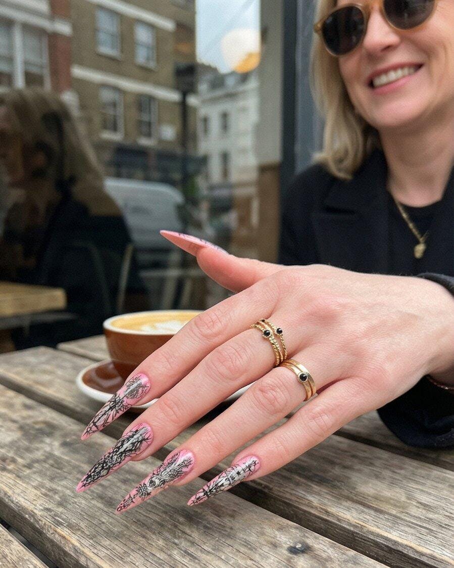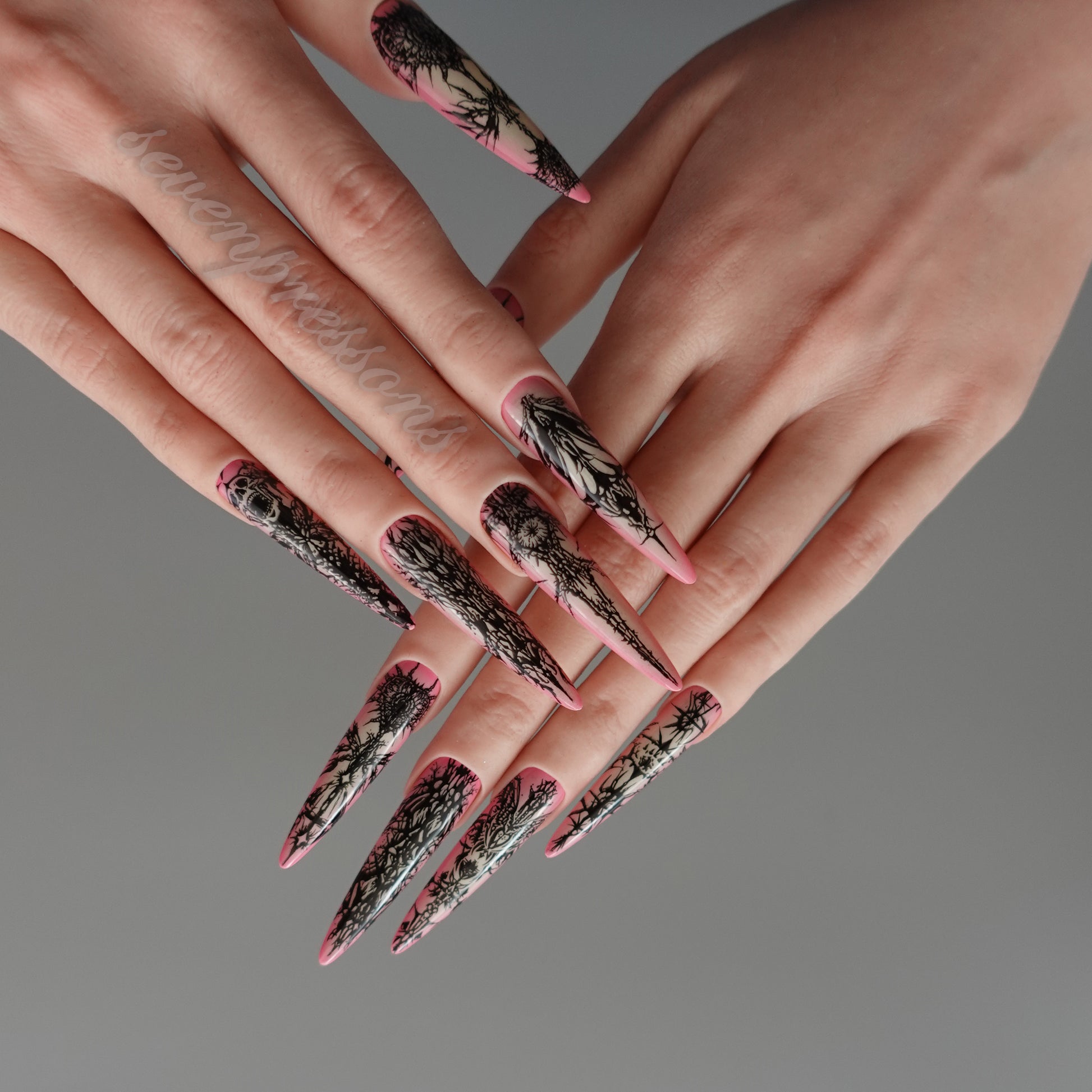 Seven Treasures nails are custom-made works of nail art.